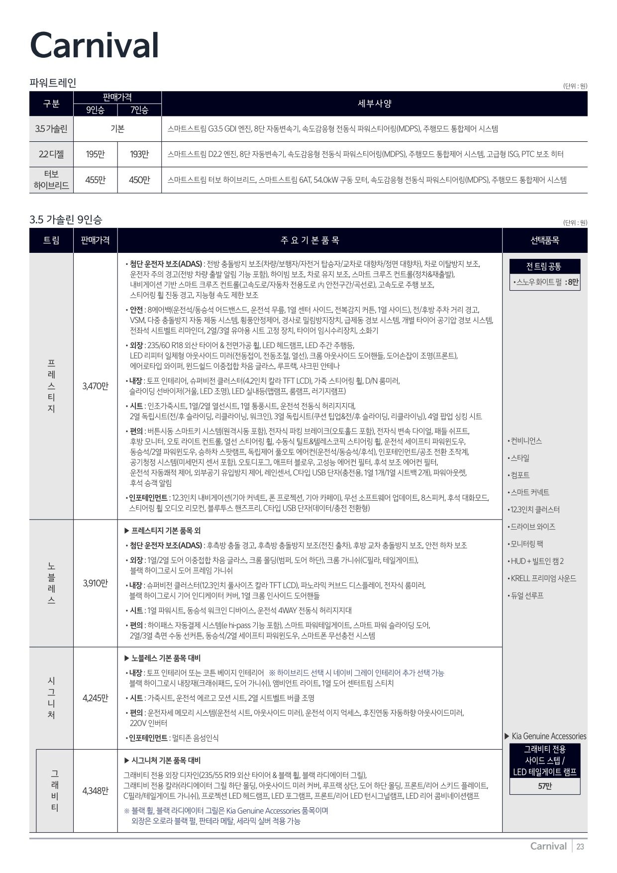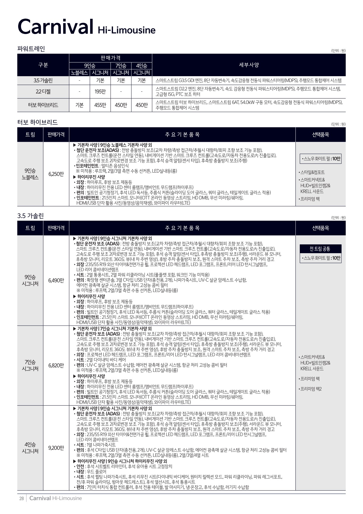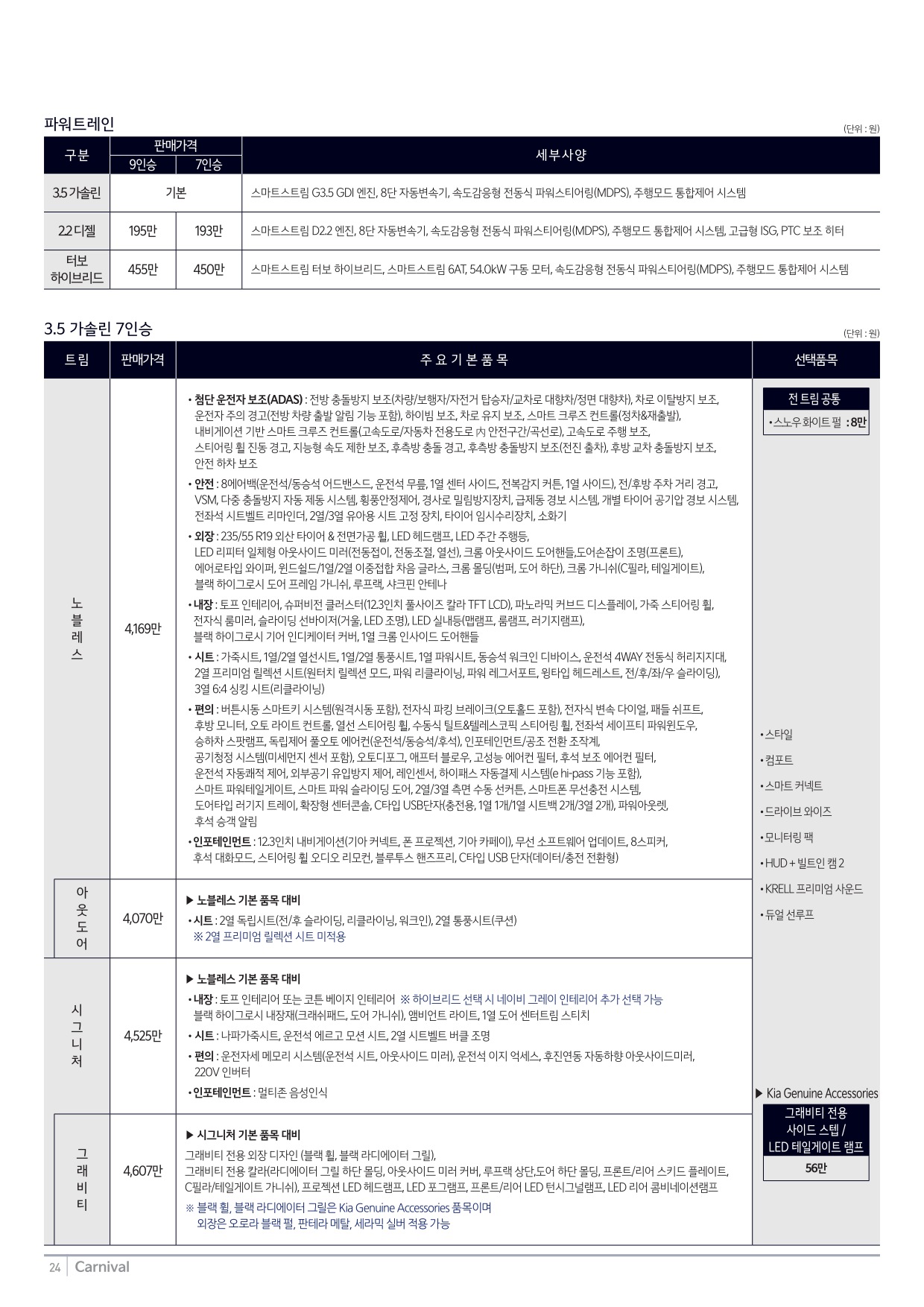 2024년 7월 카니발 & 카니발 하이리무진 신차가격표