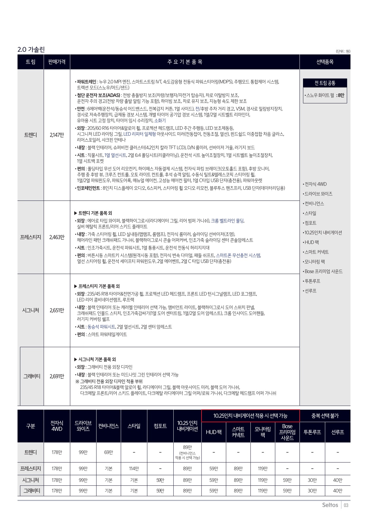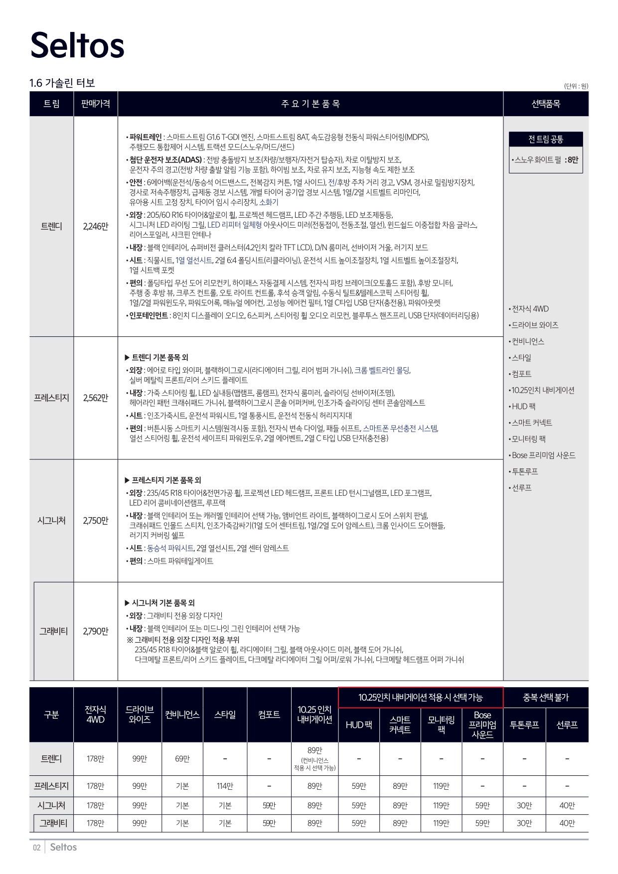 2024년 7월 셀토스 신차가격표 (2025년형 셀토스 출시)