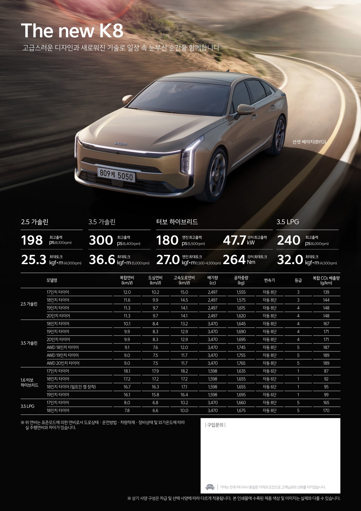 2024년 8월 K8 신차가격표 (더 뉴 K8 출시)