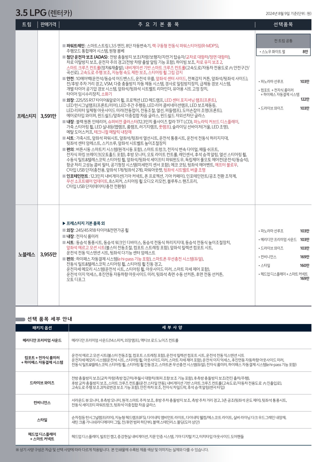 ※ 본 가격표의 모든 저작권은 해당 차량 제조사에 있습니다.