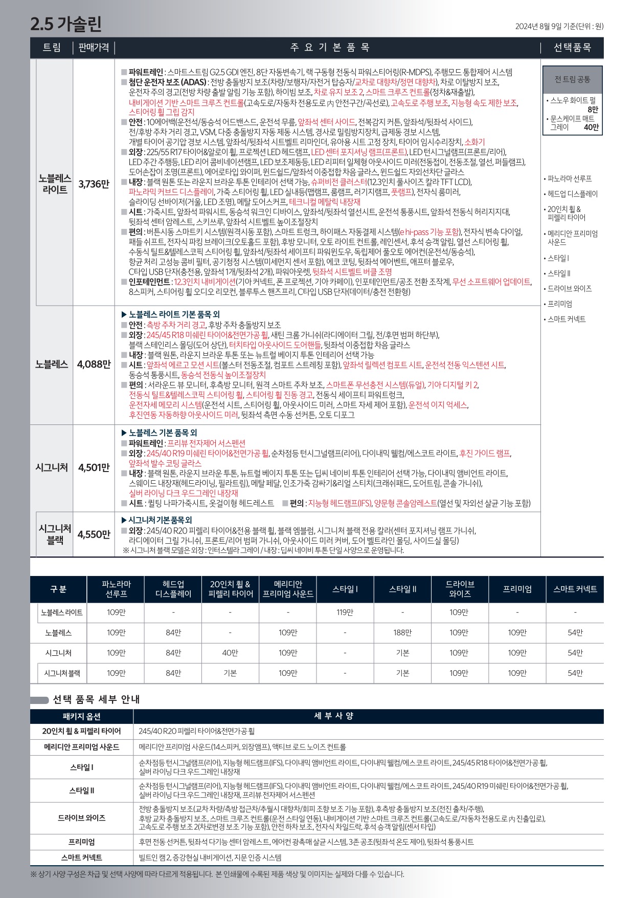 2024년 9월 쏘렌토 신차가격표 (2025년형 쏘렌토 출시)
