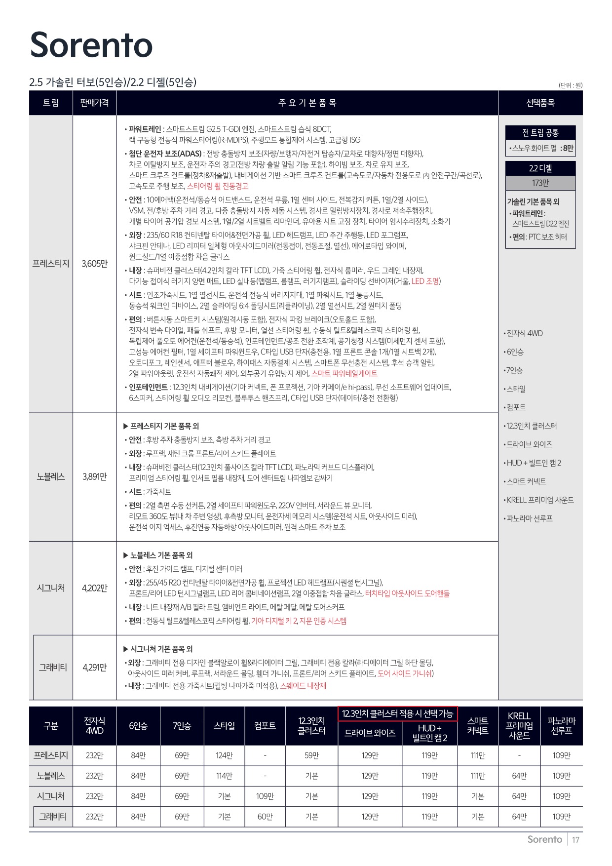 2024년 9월 쏘렌토 신차가격표 (2025년형 쏘렌토 출시)