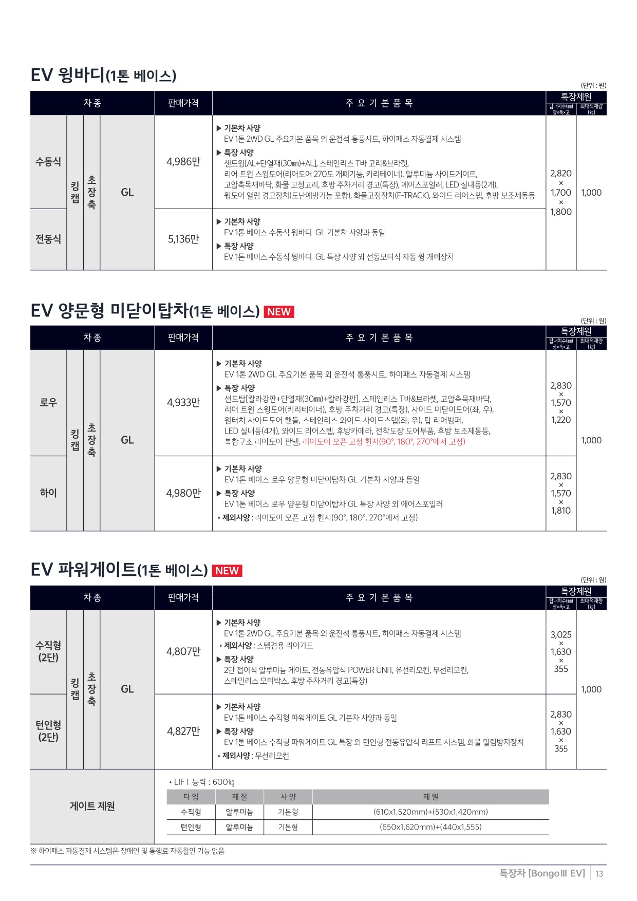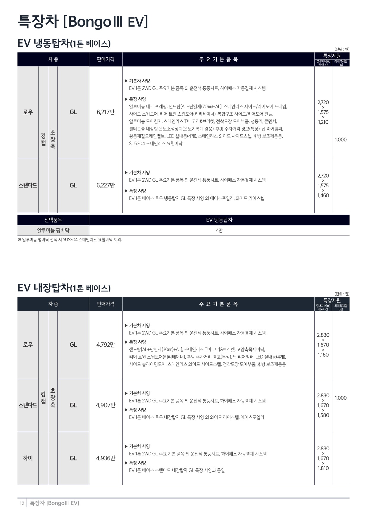 2024년 12월 봉고3 EV & 봉고3 EV 특장차 신차가격표