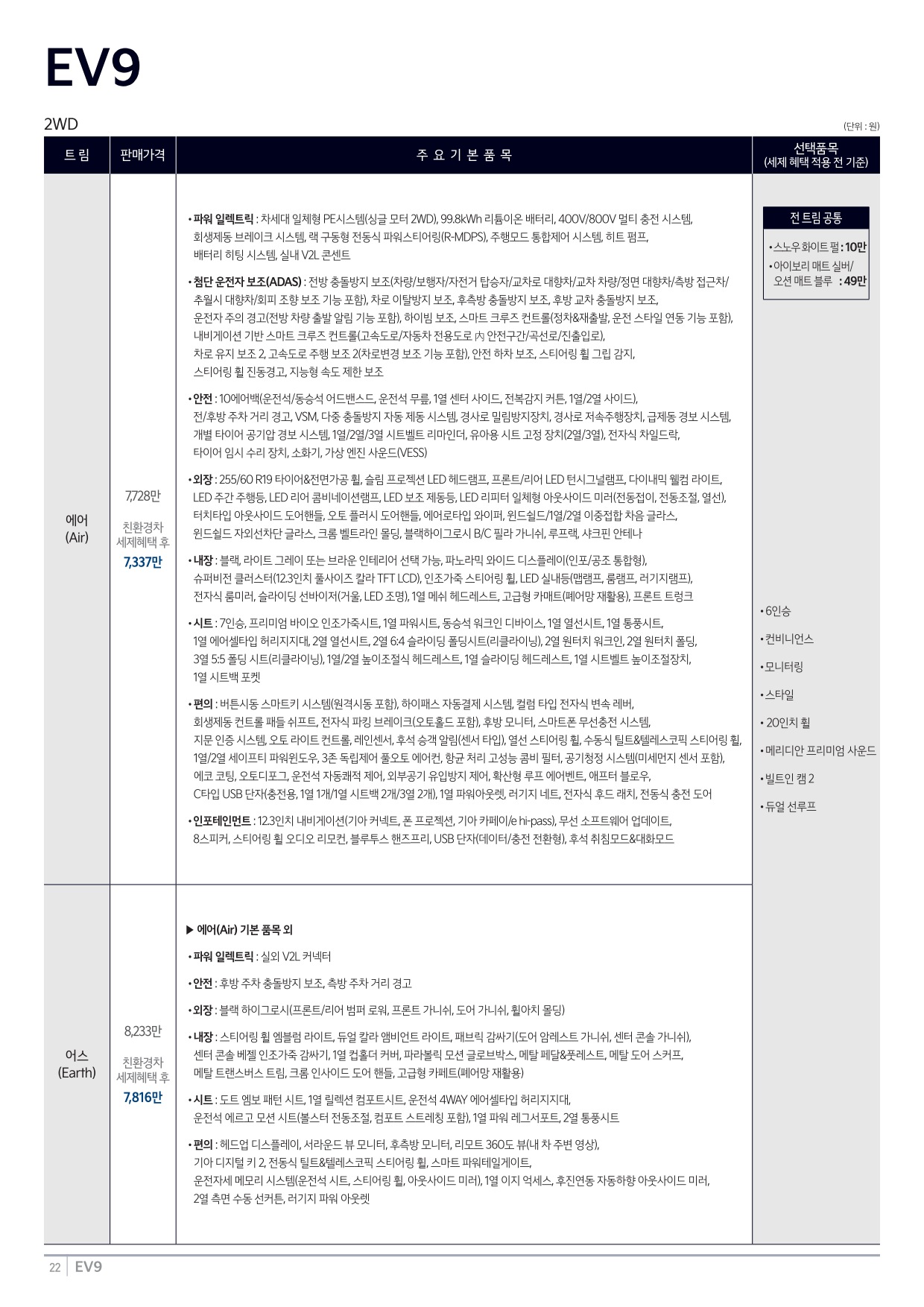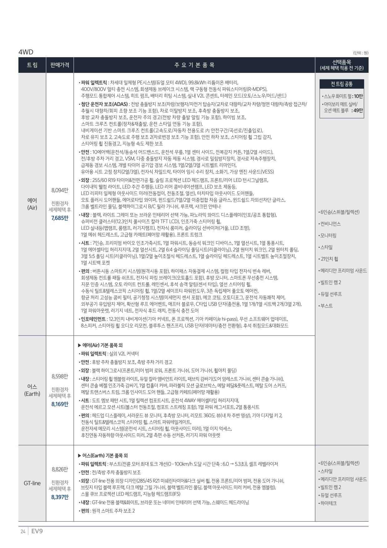 2024년 7월 봉고3 EV & 봉고3 EV 특장차 신차가격표