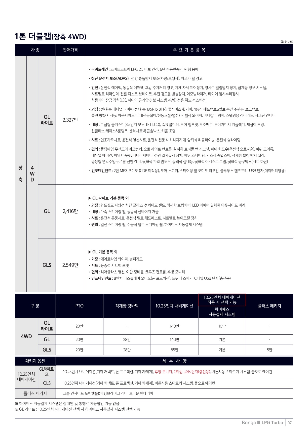 2024년 7월 봉고3 신차가격표