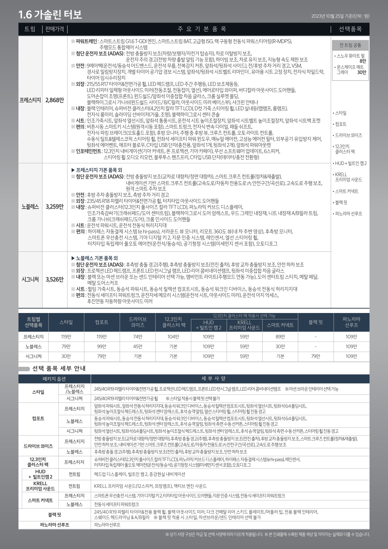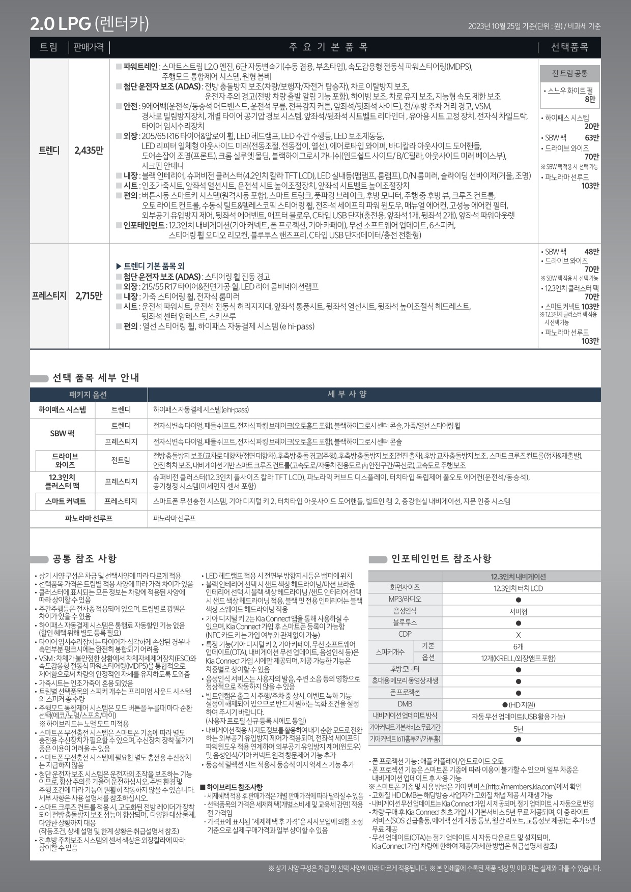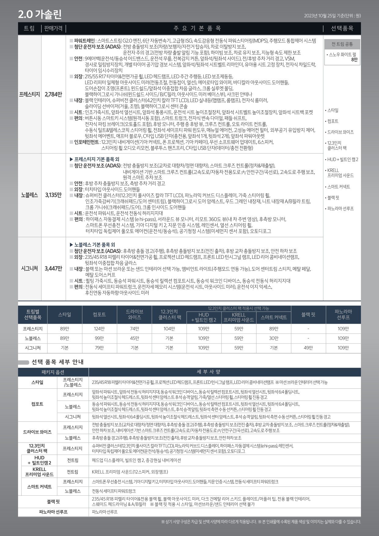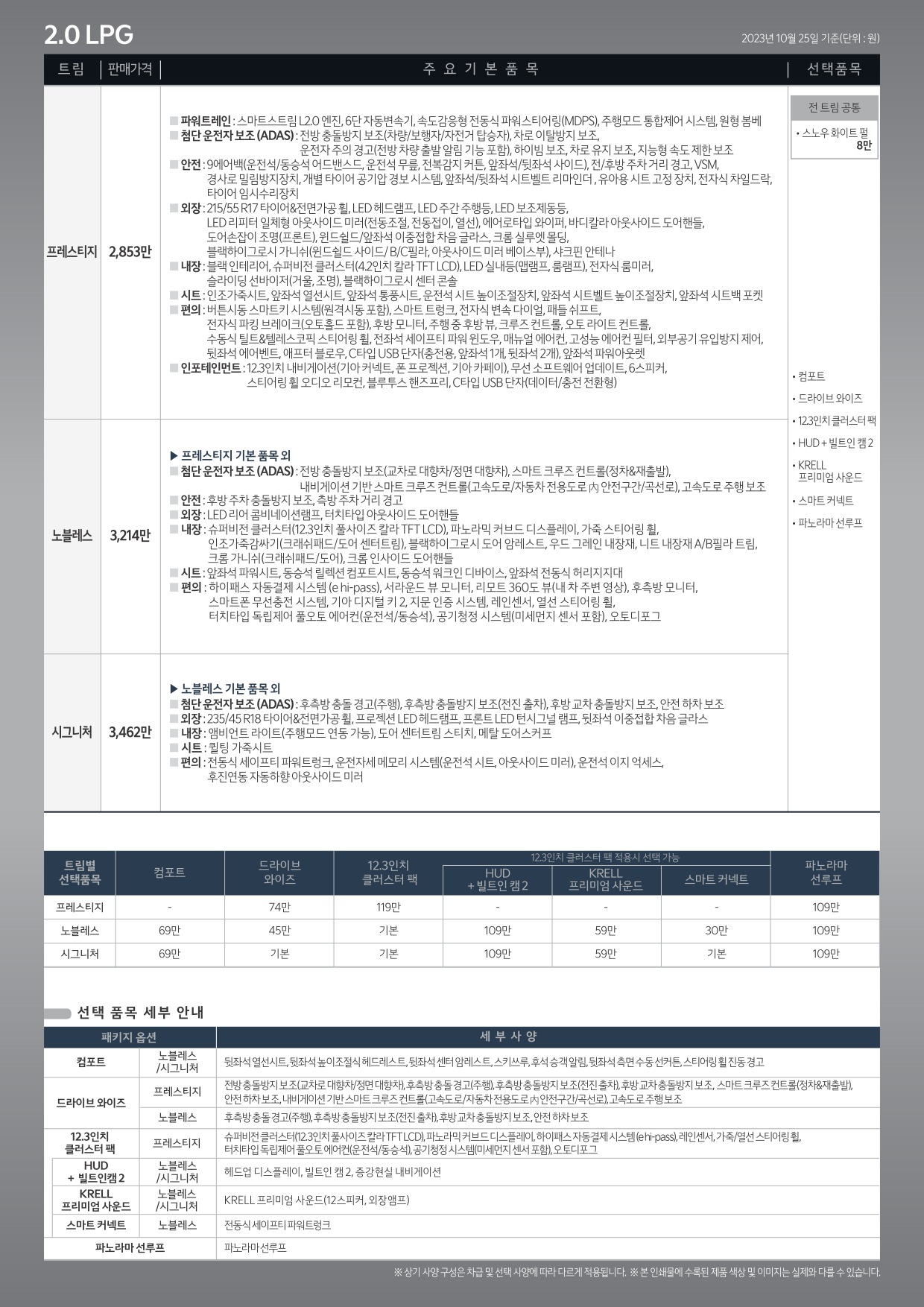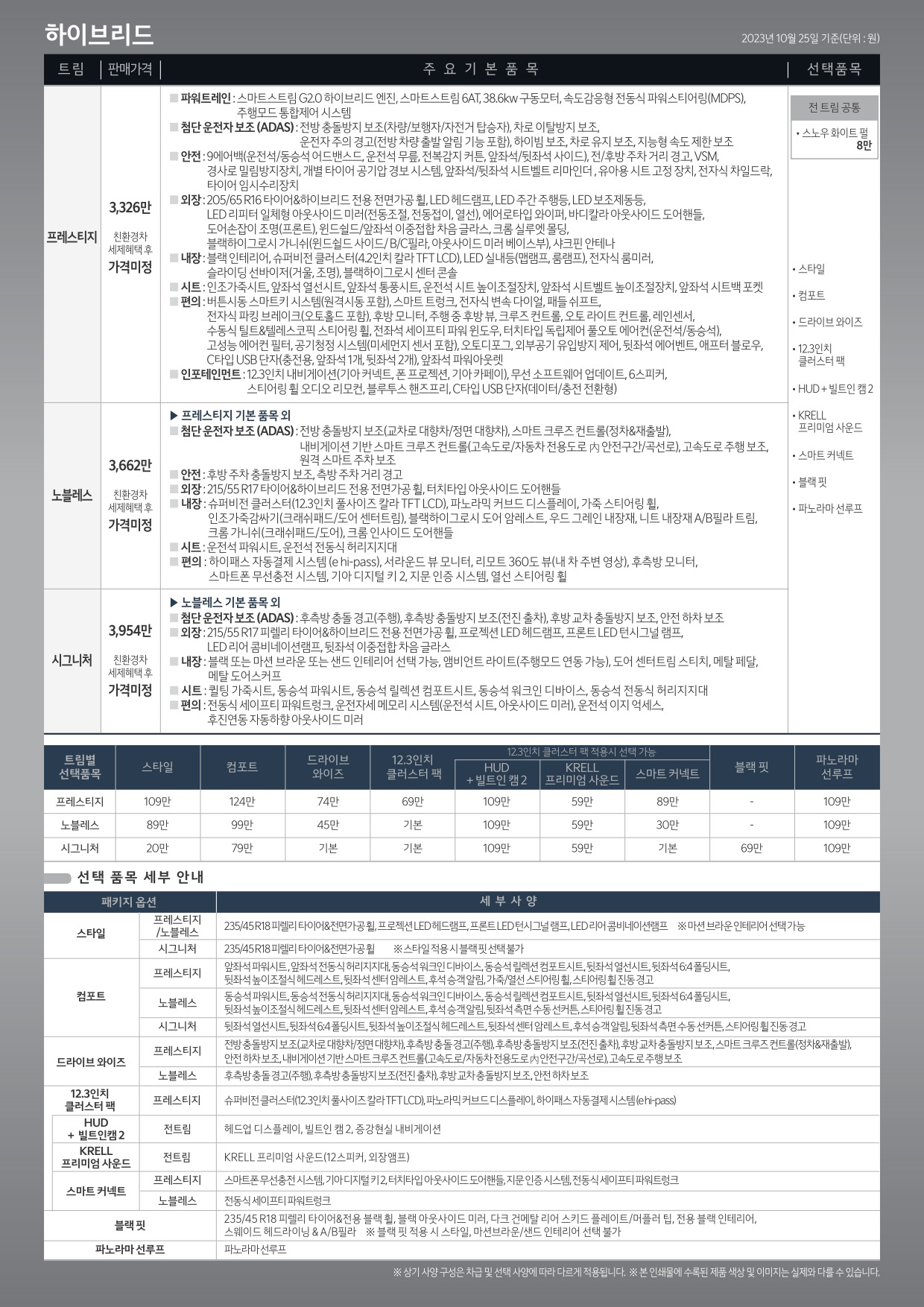 2023년 10월 더뉴 K5 신차가격표 (3세대 K5 페이스리프트 사전계약용)