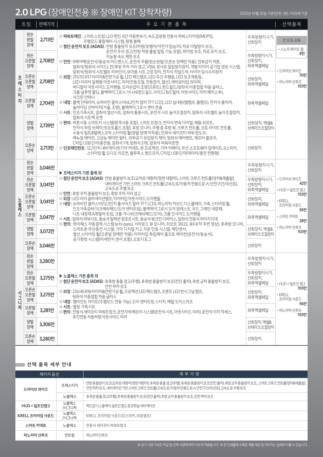 ※ 본 가격표의 모든 저작권은 해당 차량 제조사에 있습니다.