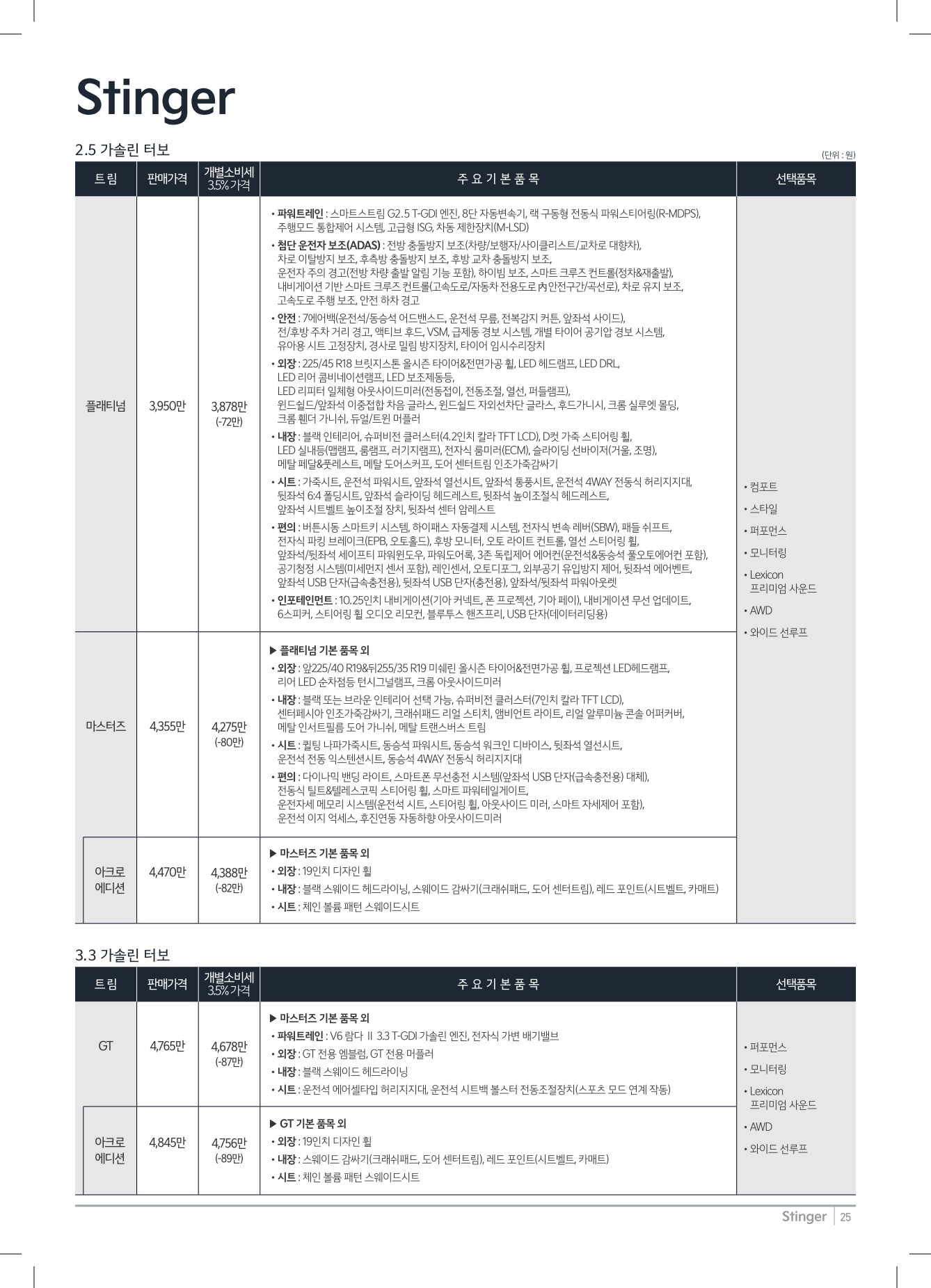 스팅어 트리뷰트 에디션 출시 (국내 200대 한정)