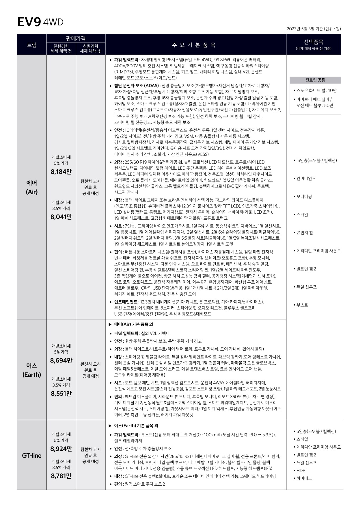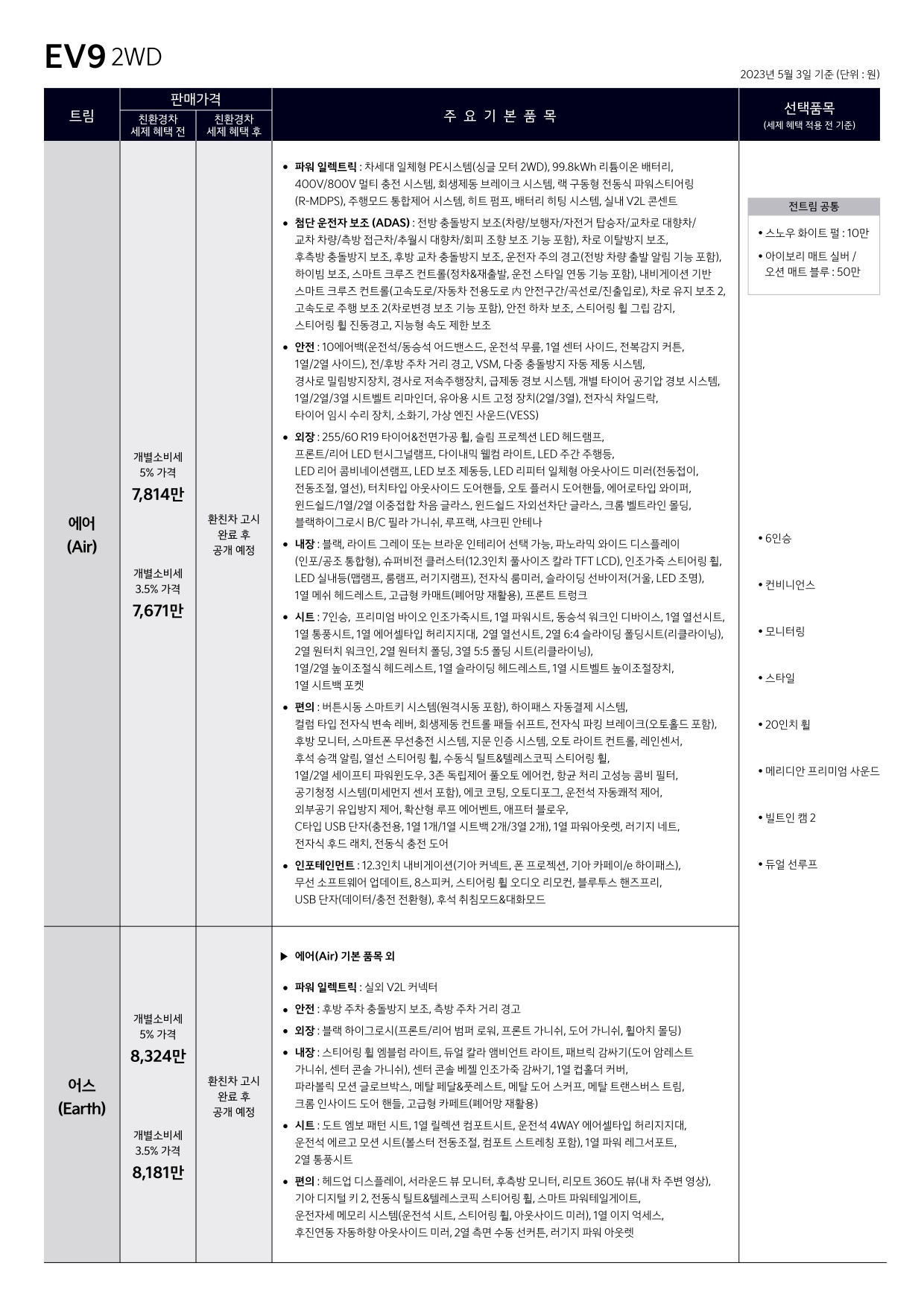 2023년 6월 EV9 신차가격표 (EV9 출시)