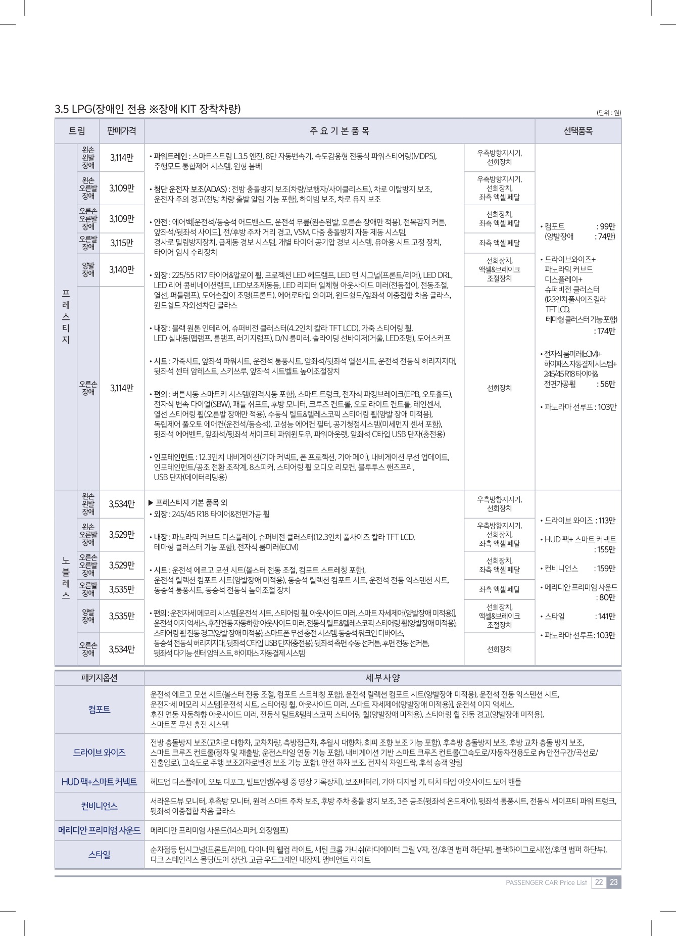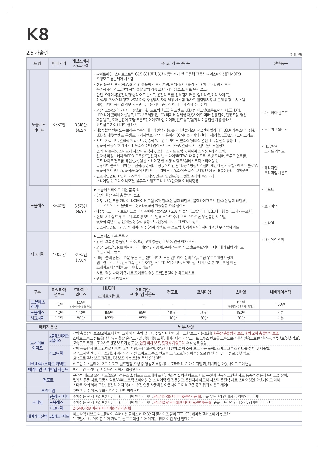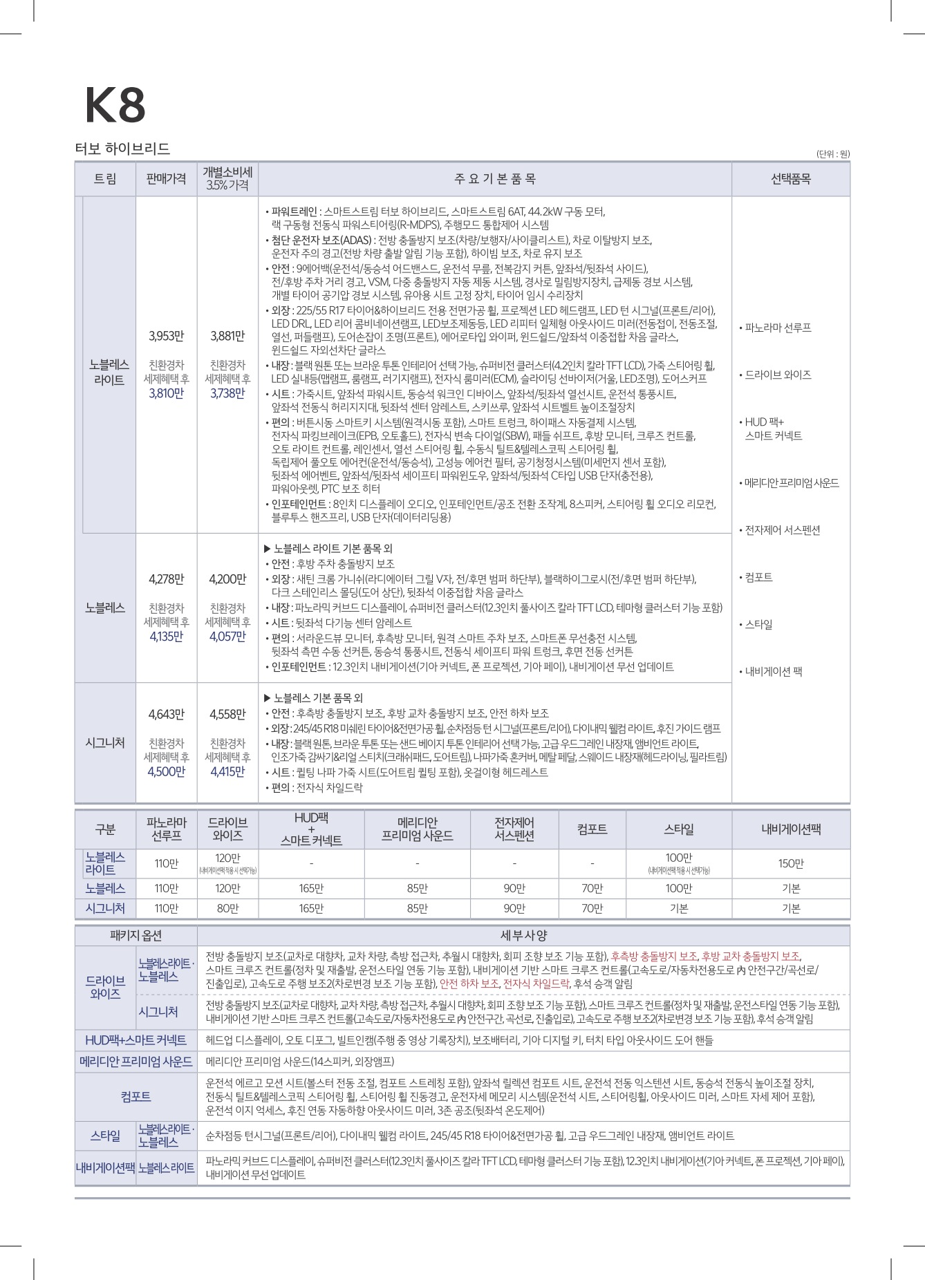 2022년 5월 K8 신차가격표 (2023년형 K8 출시, 휘발류, LPG, 하이브리드)