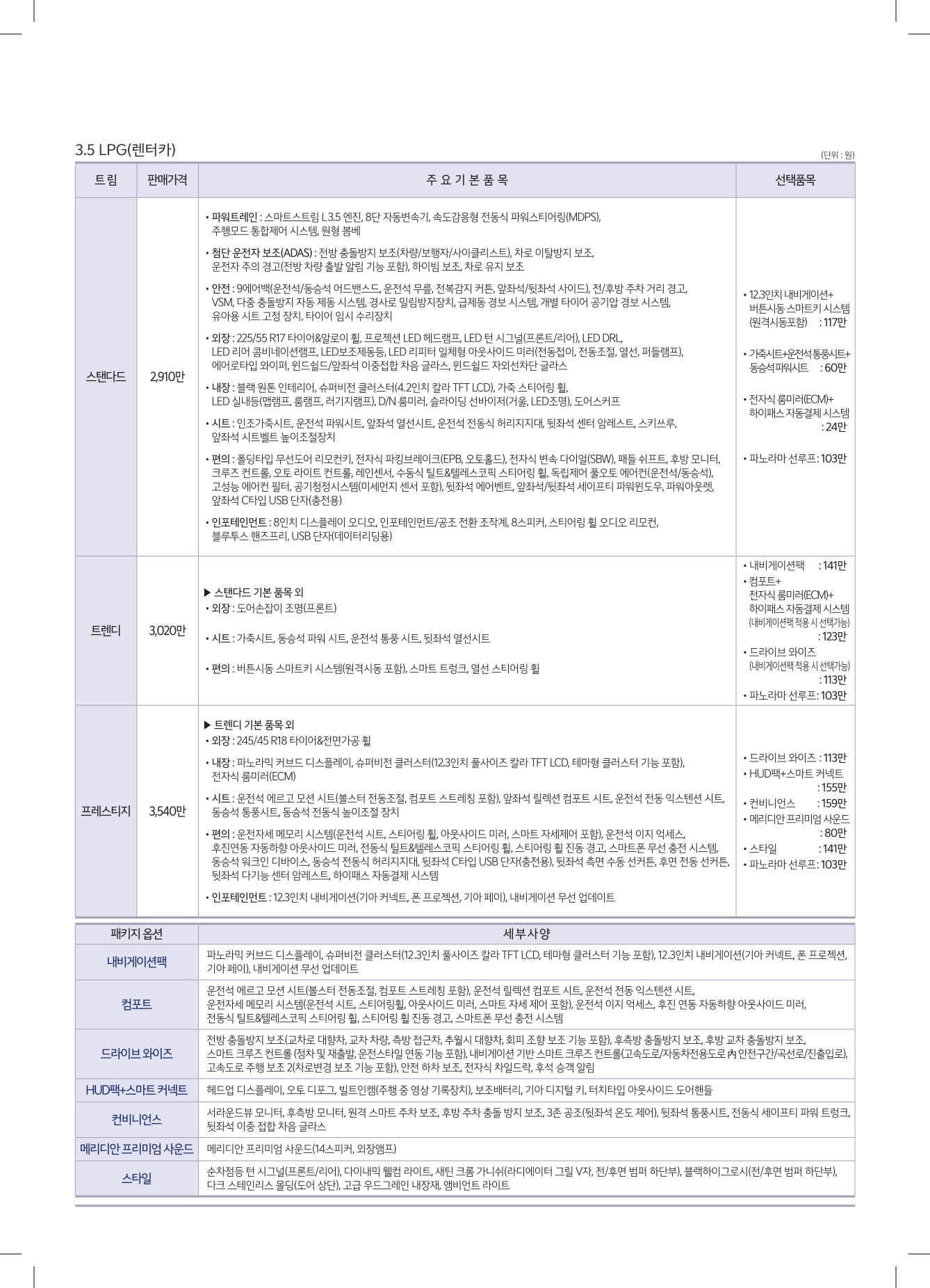 ※ 본 가격표의 모든 저작권은 해당 차량 제조사에 있습니다.