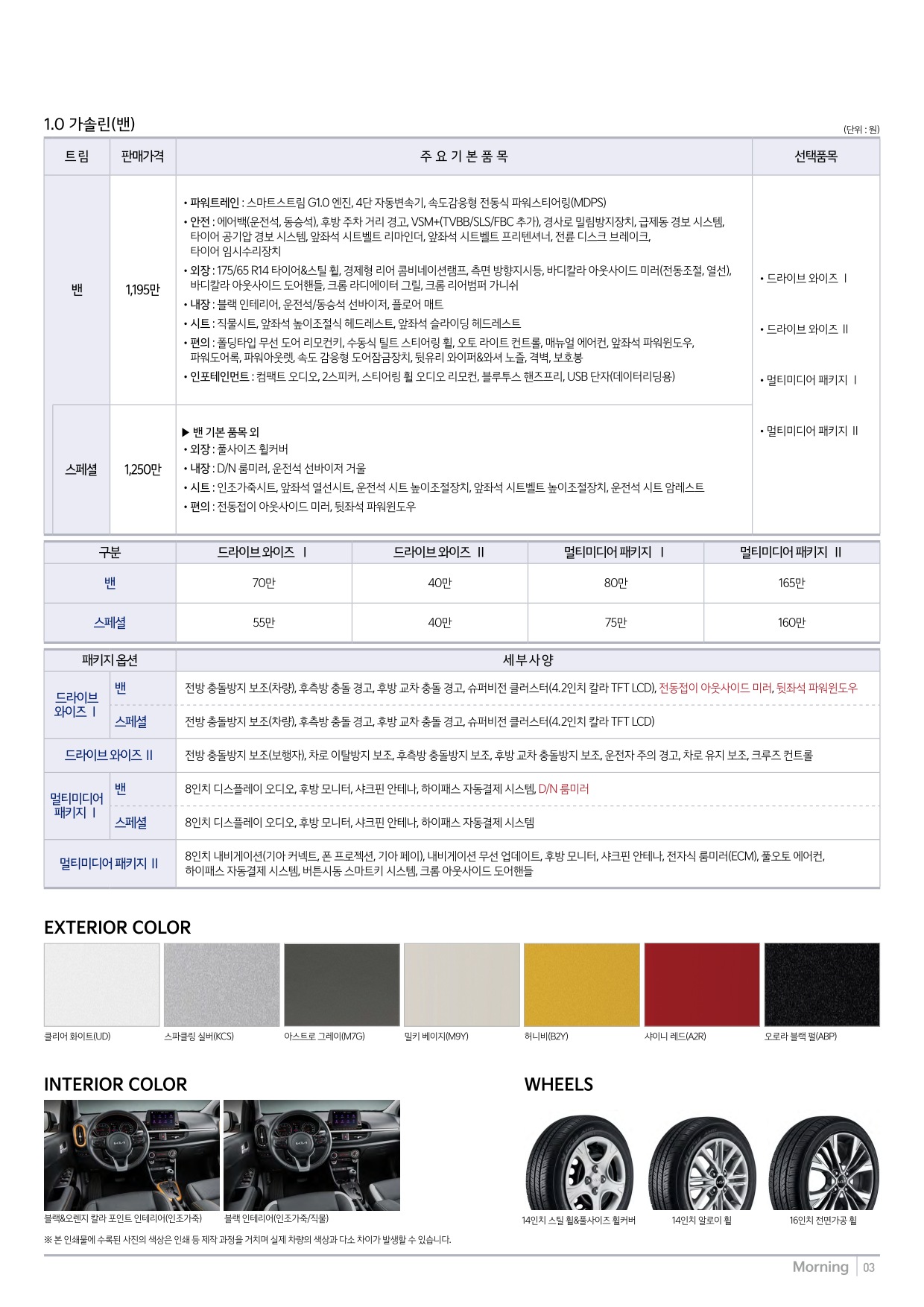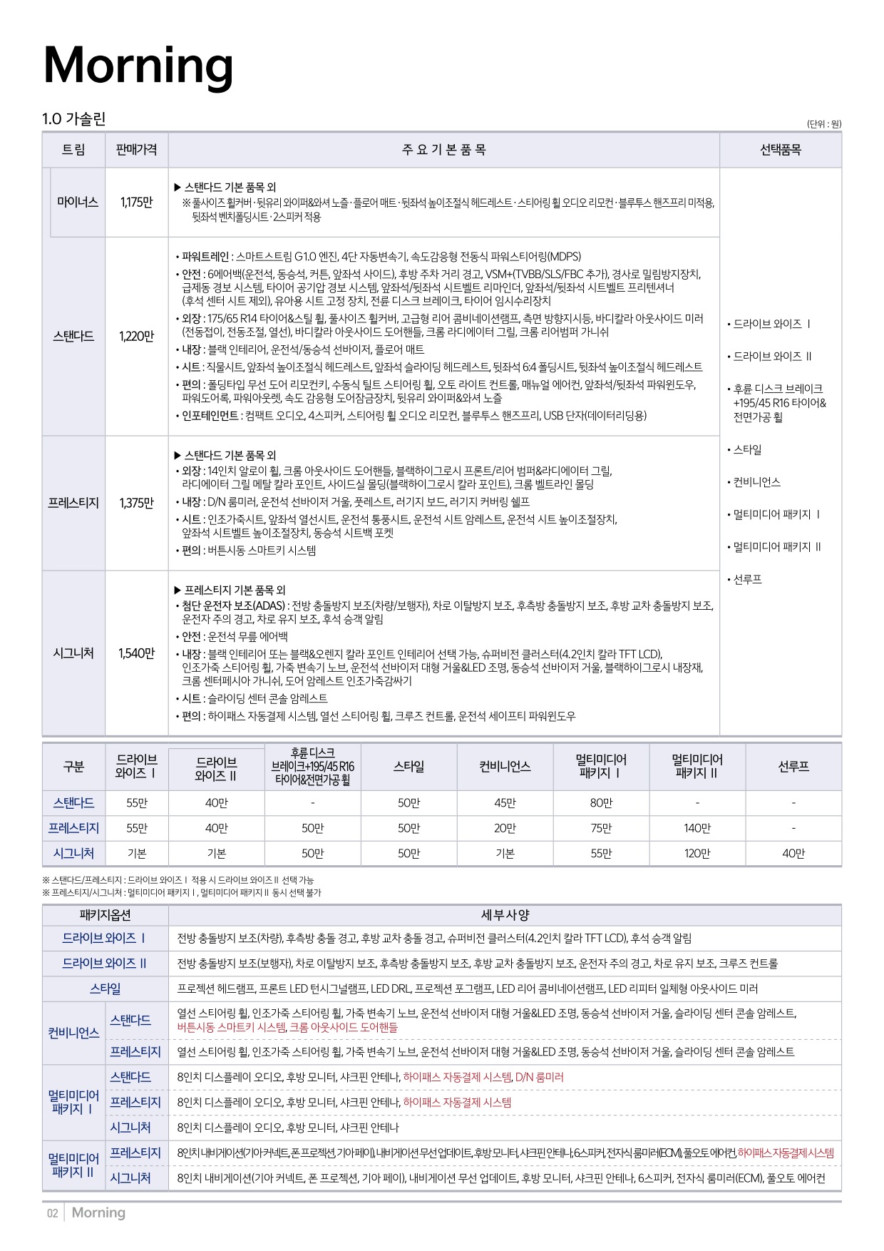 2022년 6월 모닝 신차가격표 (2023년형 모닝)
