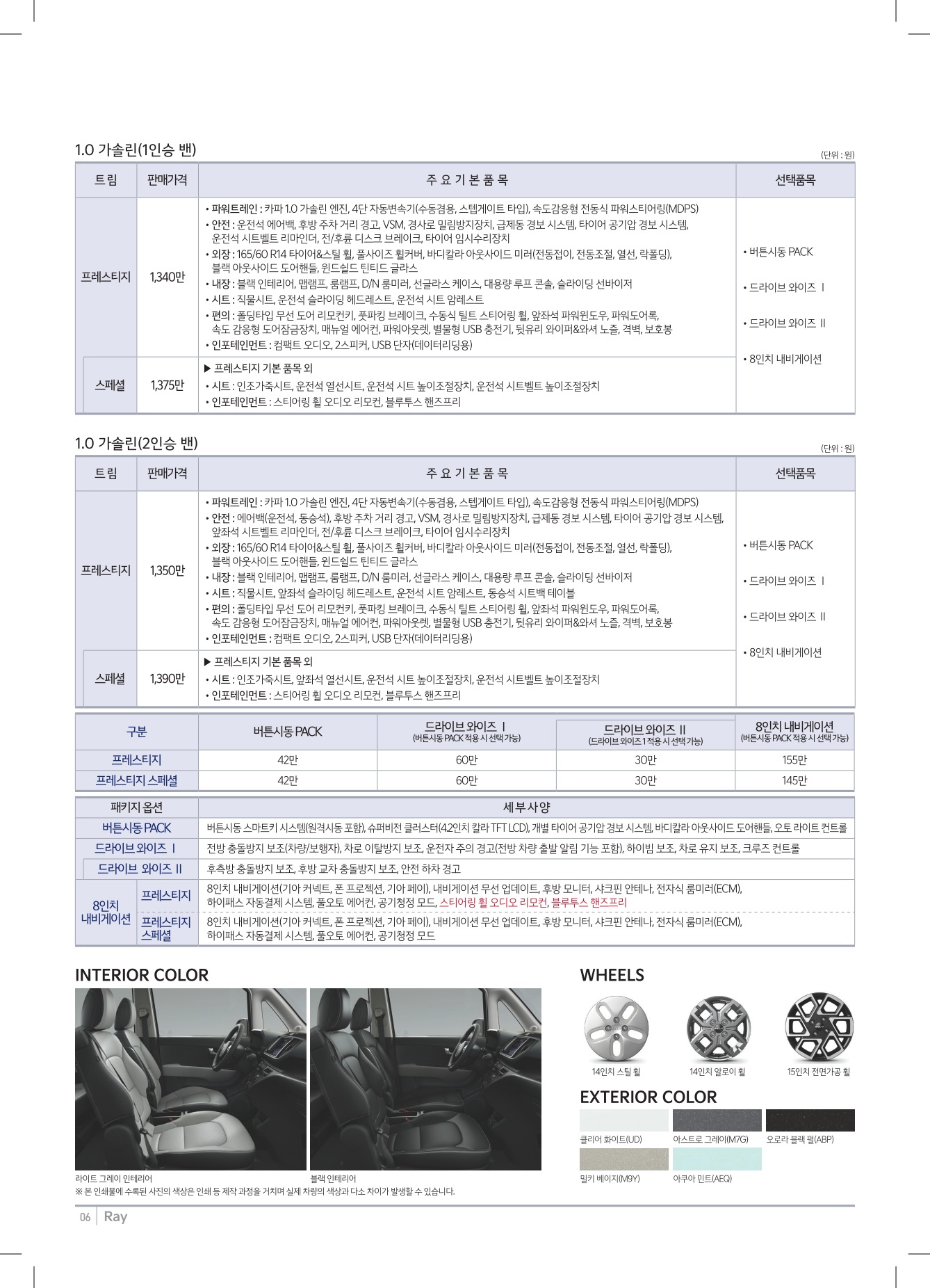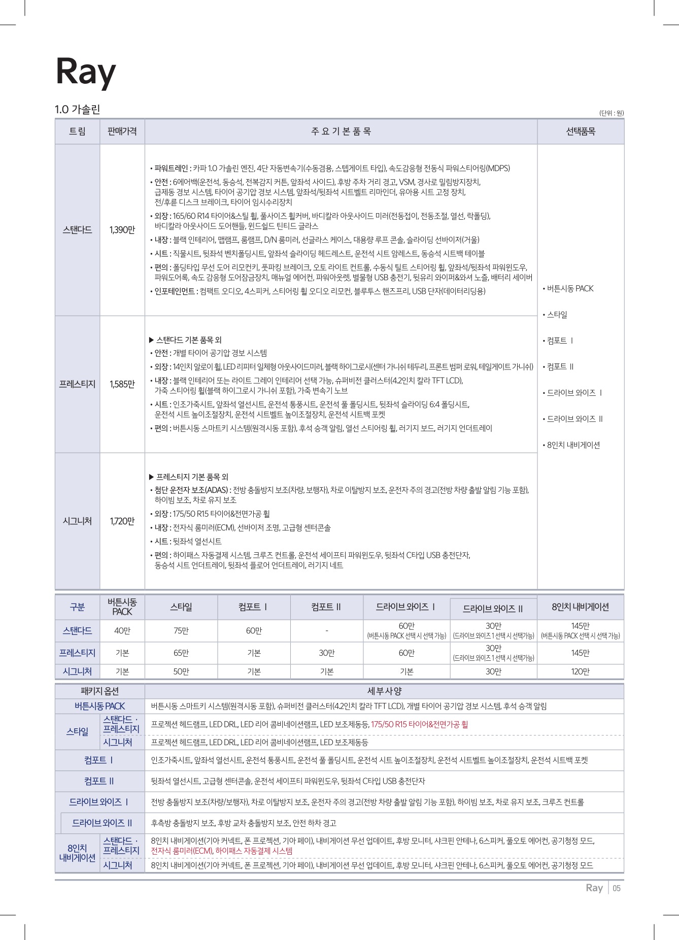 2022년 9월 레이 신차가격표 (더 뉴 기아 레이 출시)