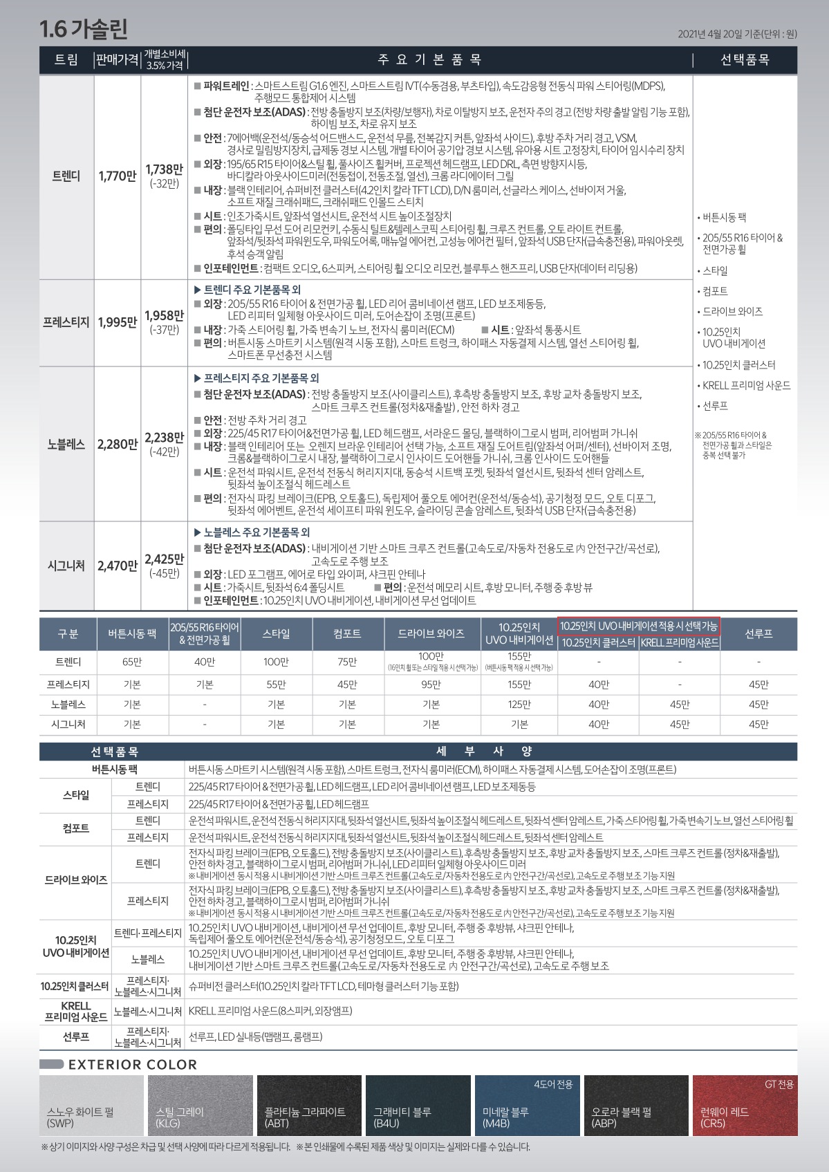 2021년 4월 K3 신차가격표 (더뉴K3출시)