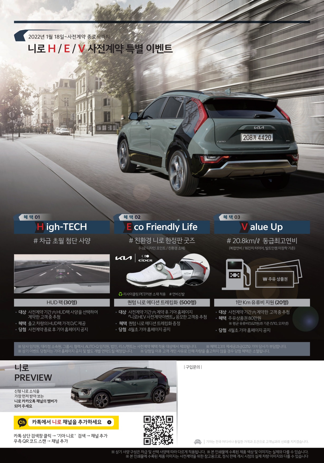 2022년 1월 니로 신차가격표 (올뉴니로 출시)