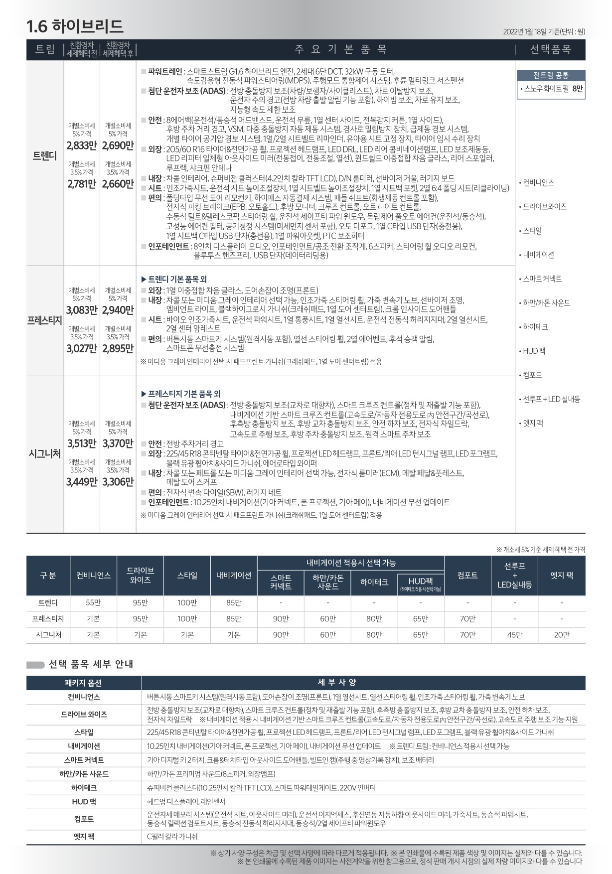 2022년 6월 니로 신차가격표 (2022년형 니로 출시)
