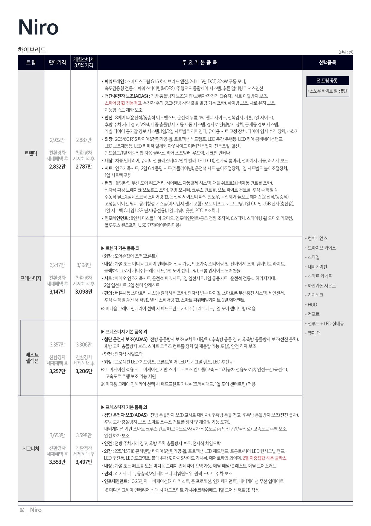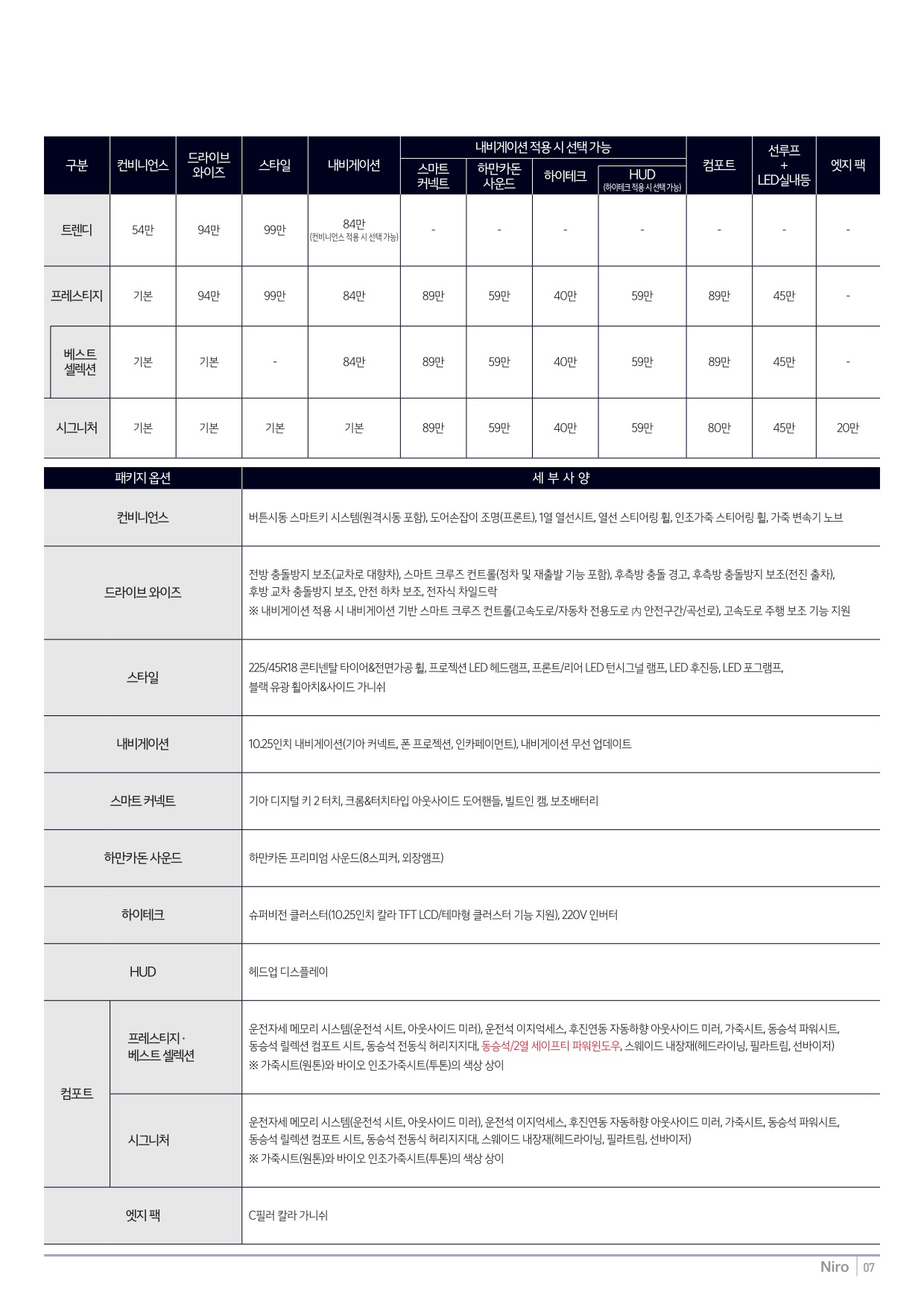 2024년 12월 니로 신차가격표