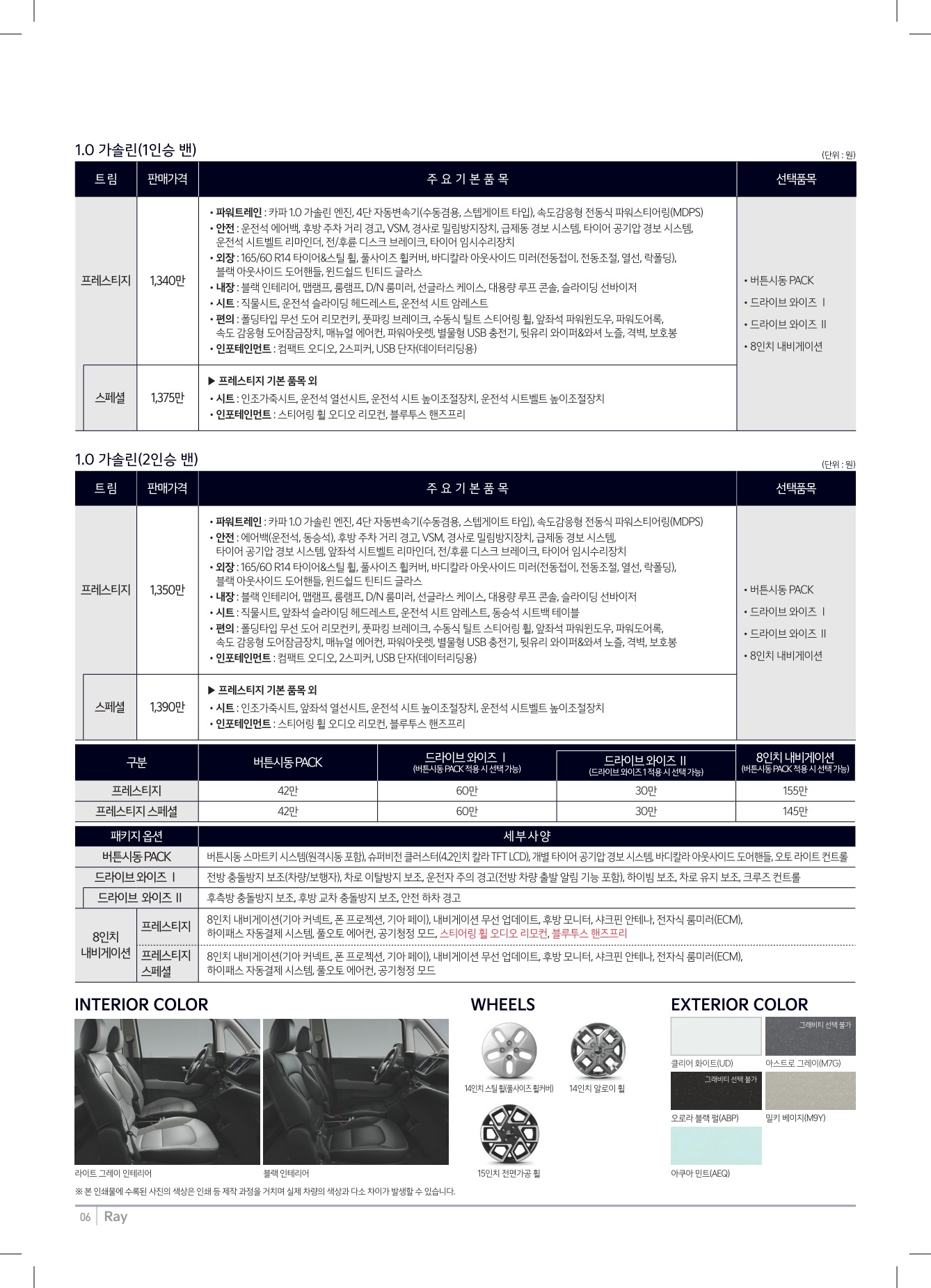 2022년 9월 레이 신차가격표 (더 뉴 기아 레이 출시)