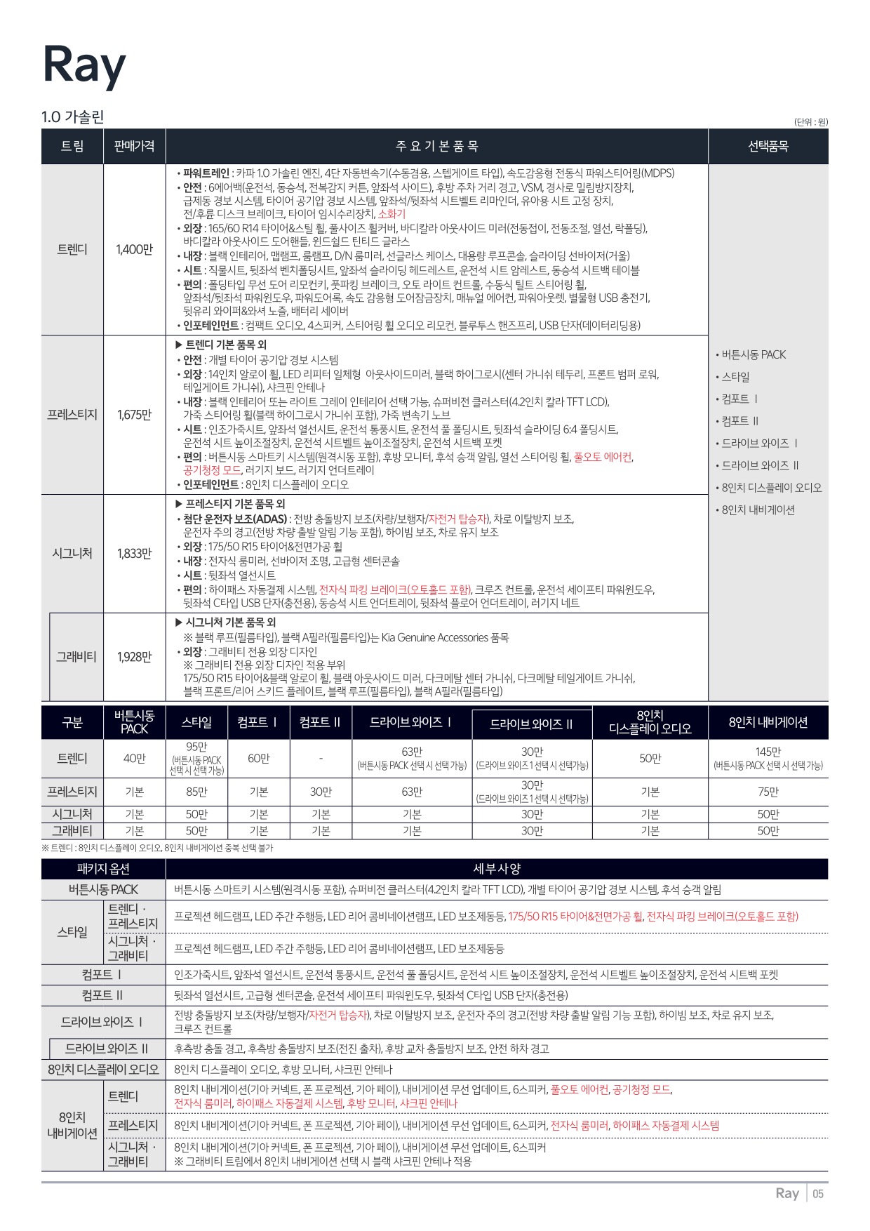 2024년 10월 레이 EV 신차가격표 (2025년형 레이EV 출시)