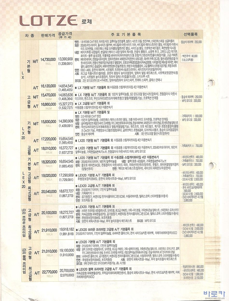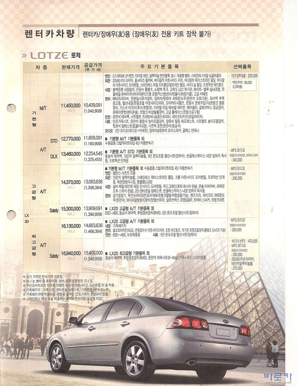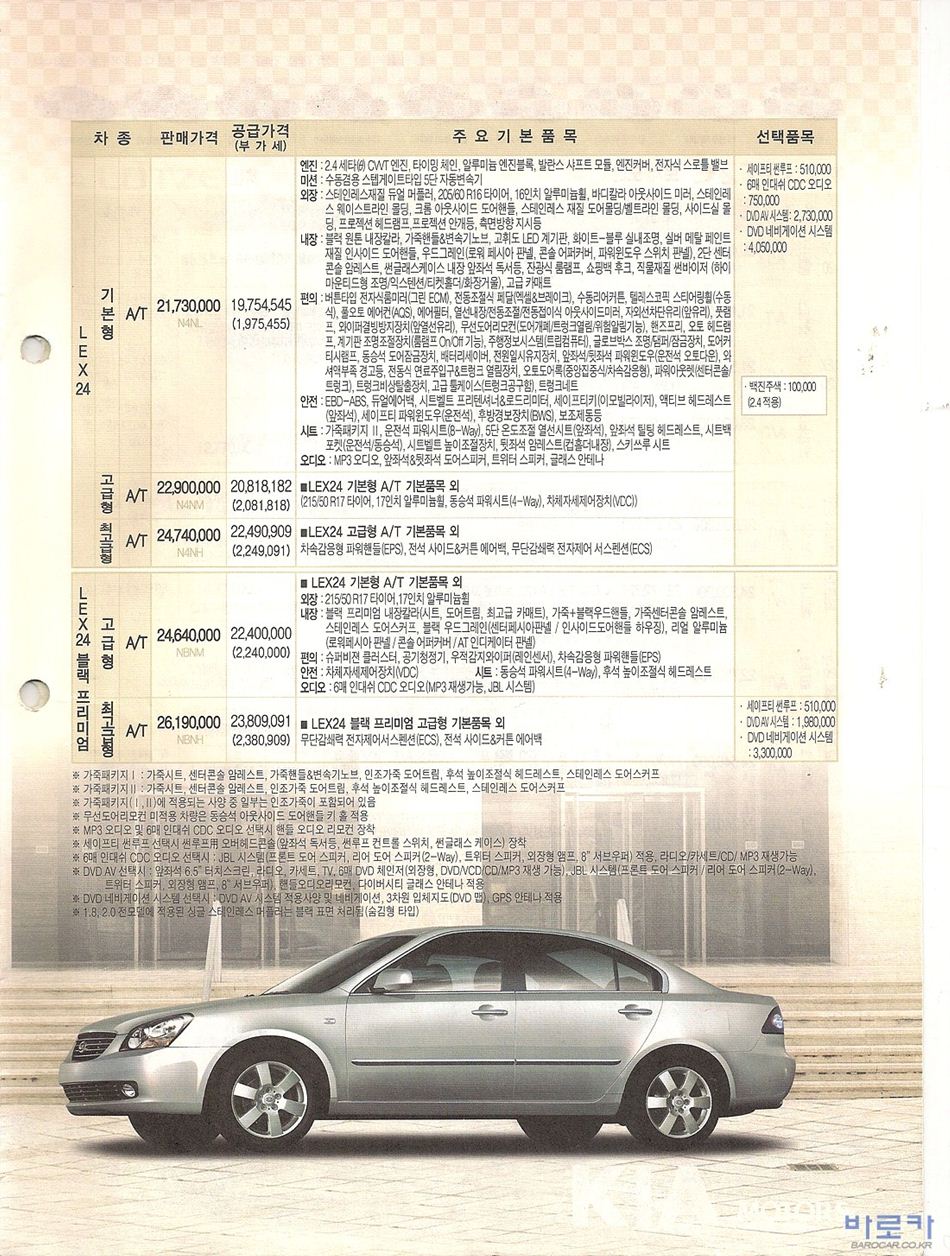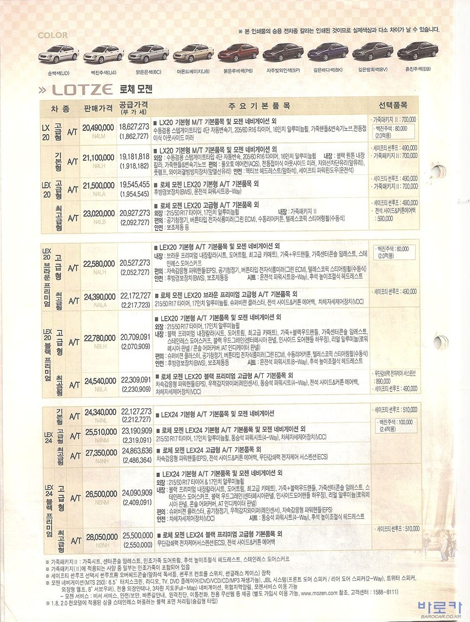 2006년 1월 로체 신차가격표