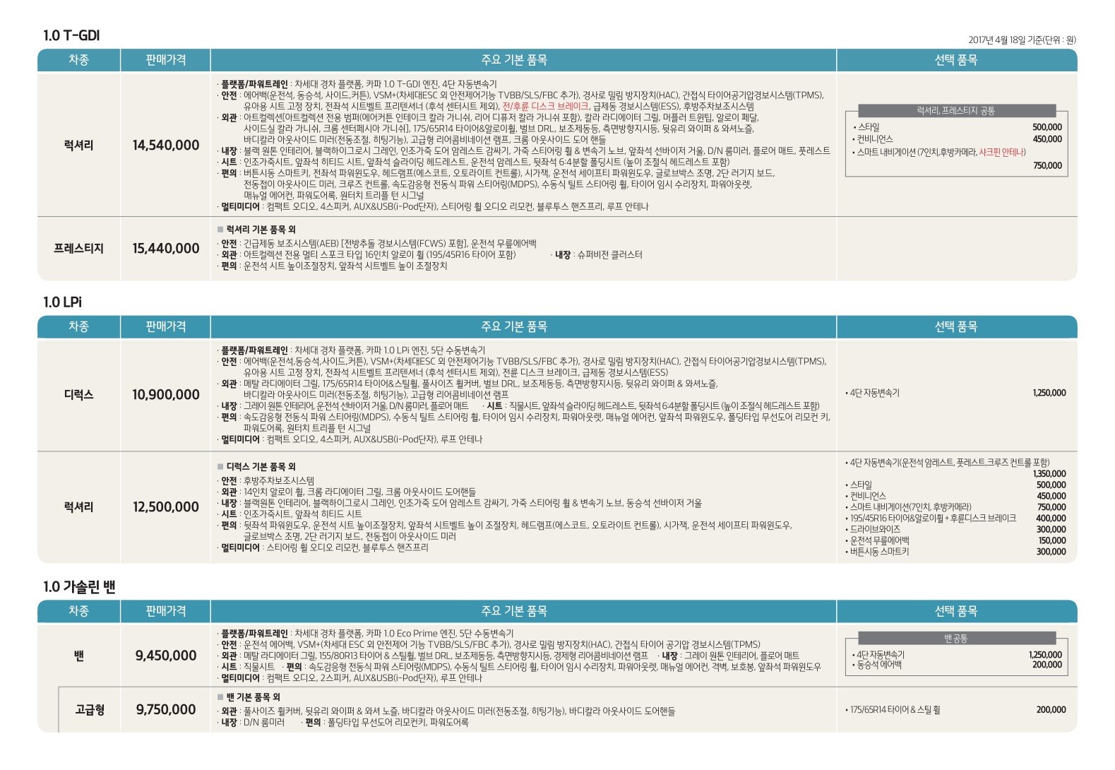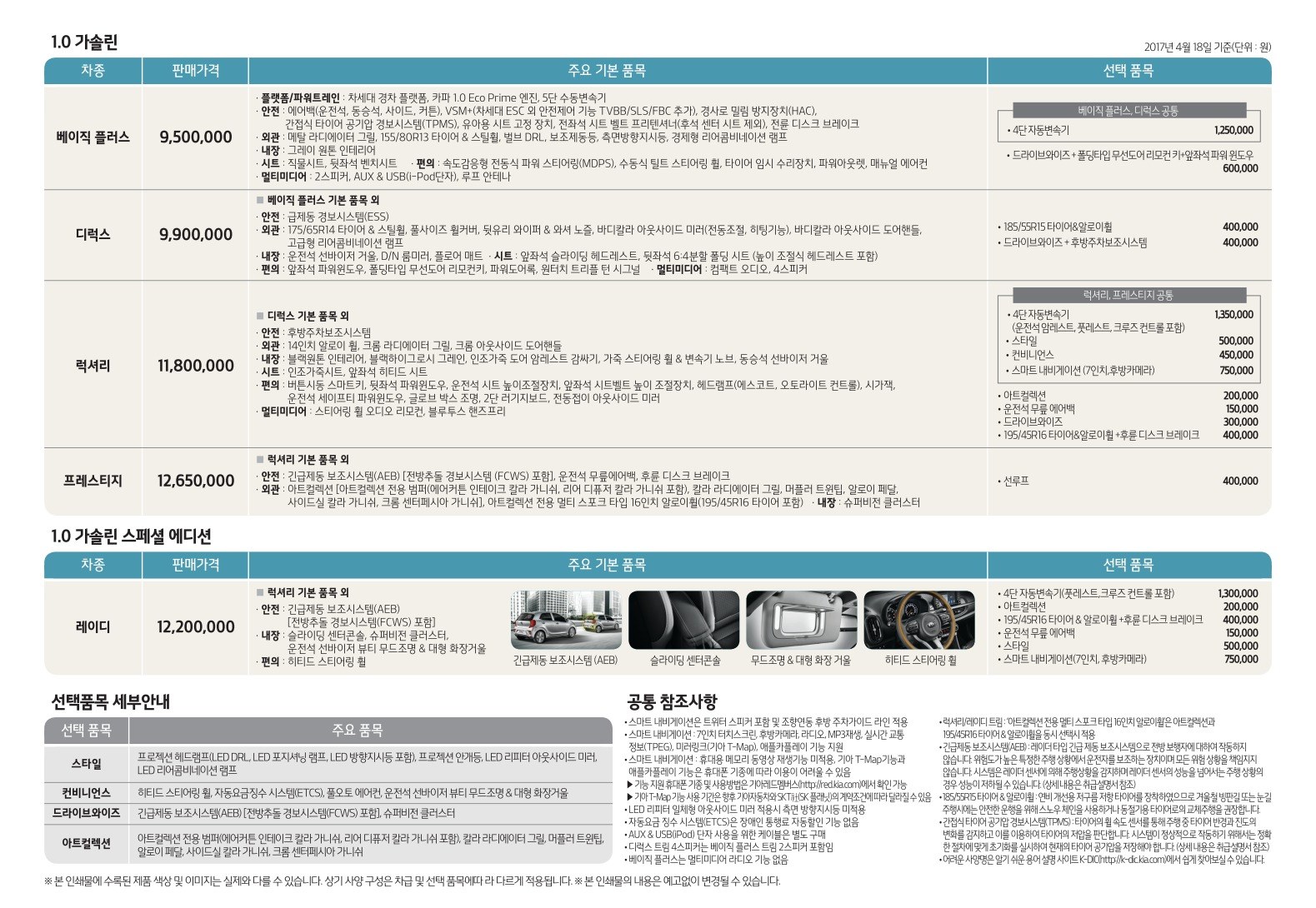 2017년 4월 모닝 신차가격표
