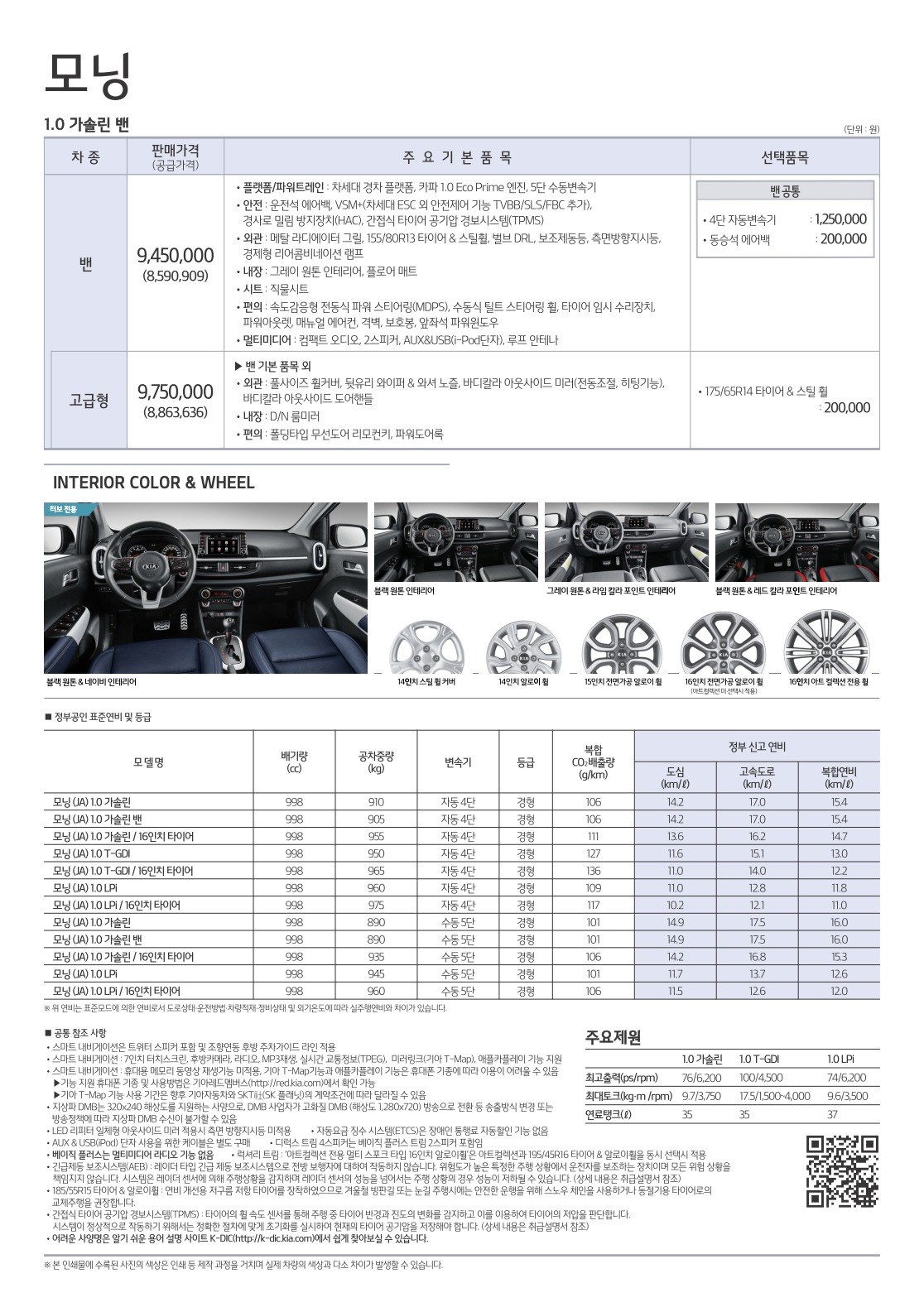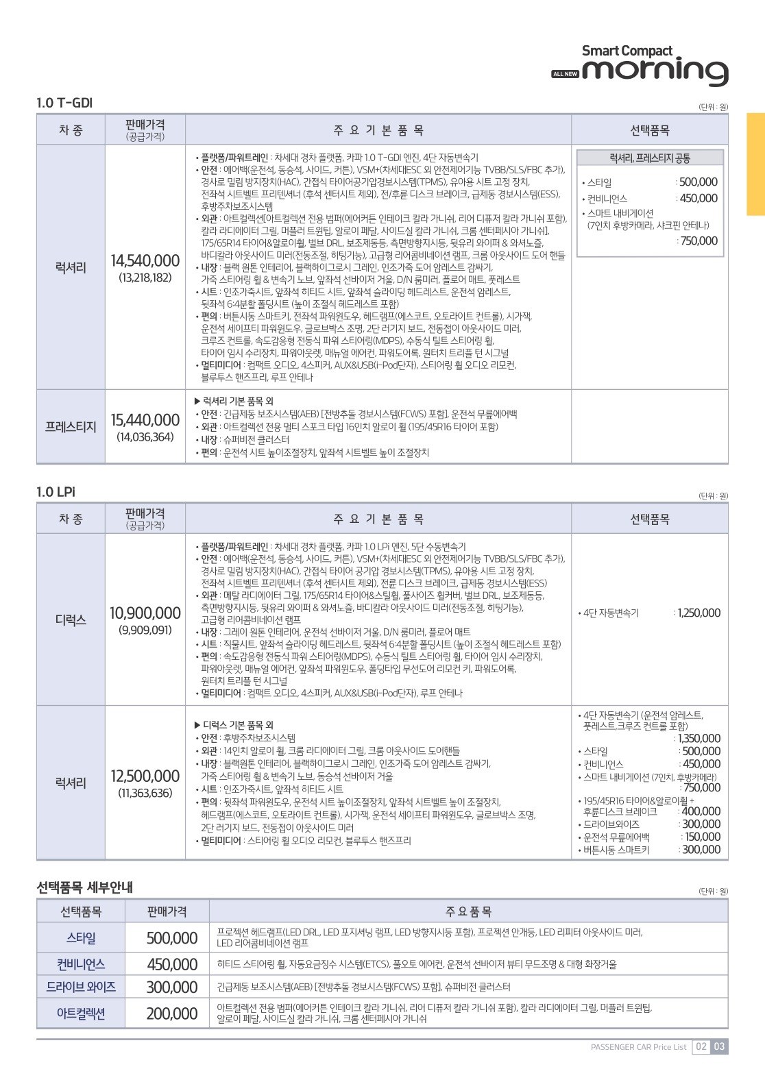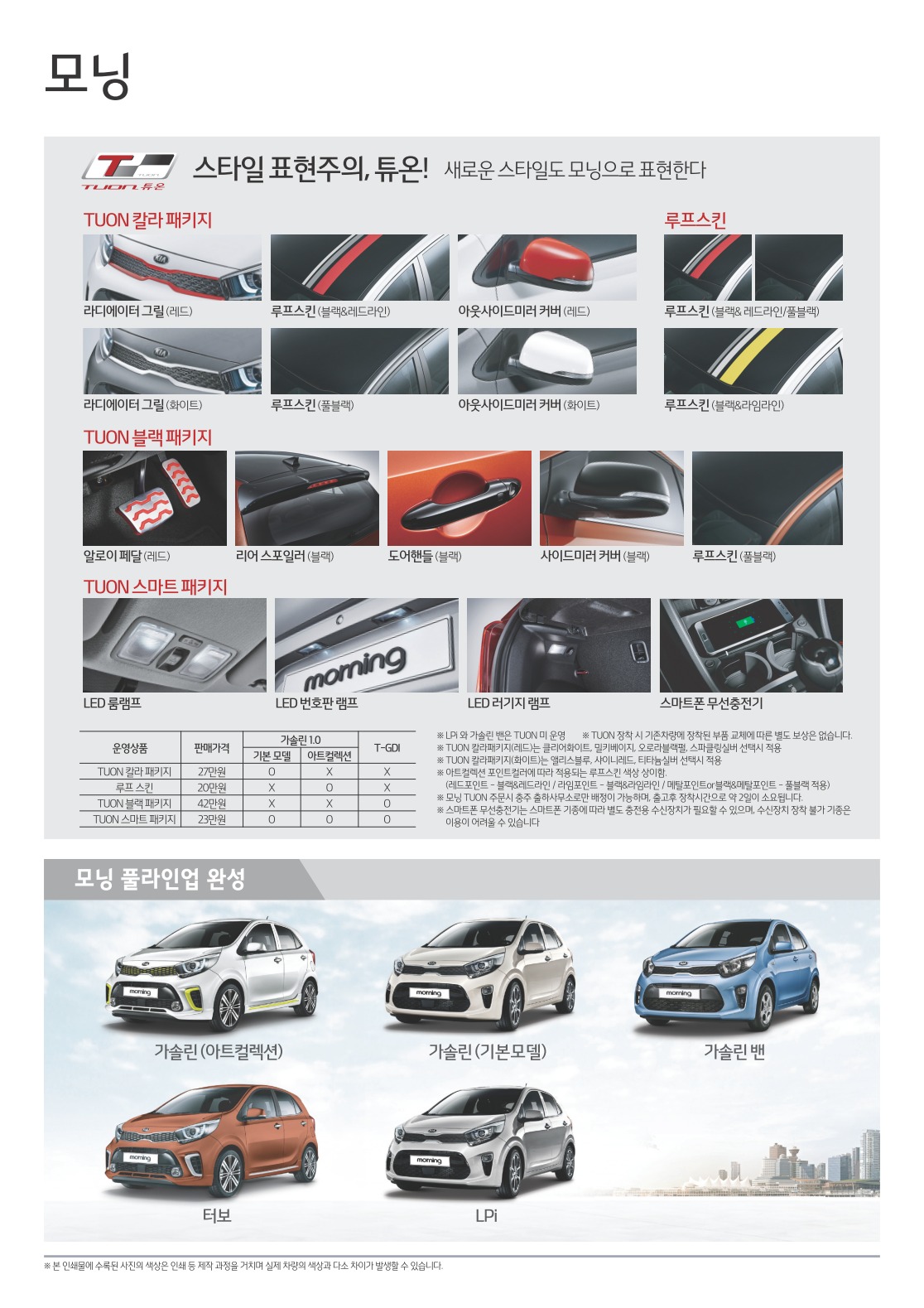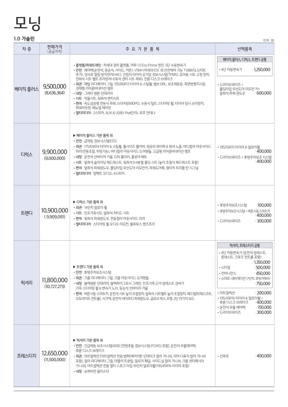 2017년 9월 모닝 신차가격표