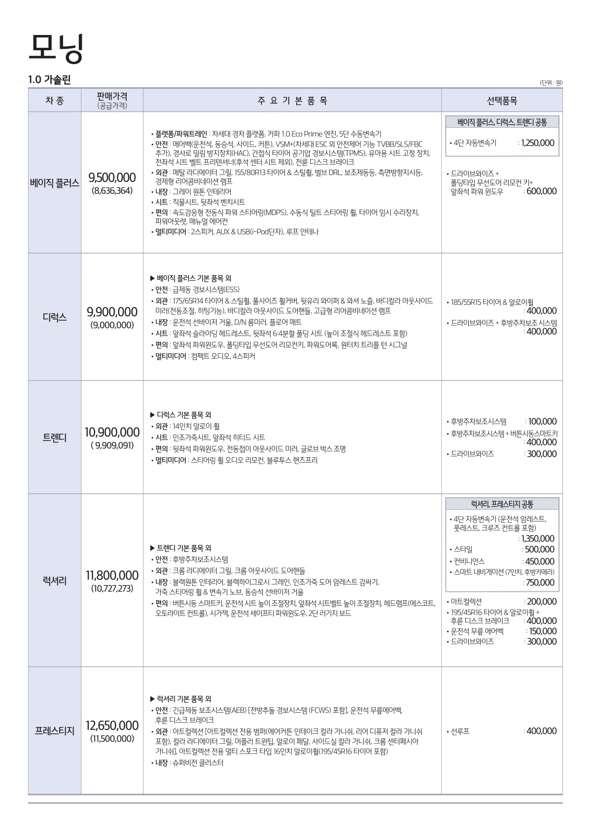 ※ 본 가격표의 모든 저작권은 해당 차량 제조사에 있습니다.