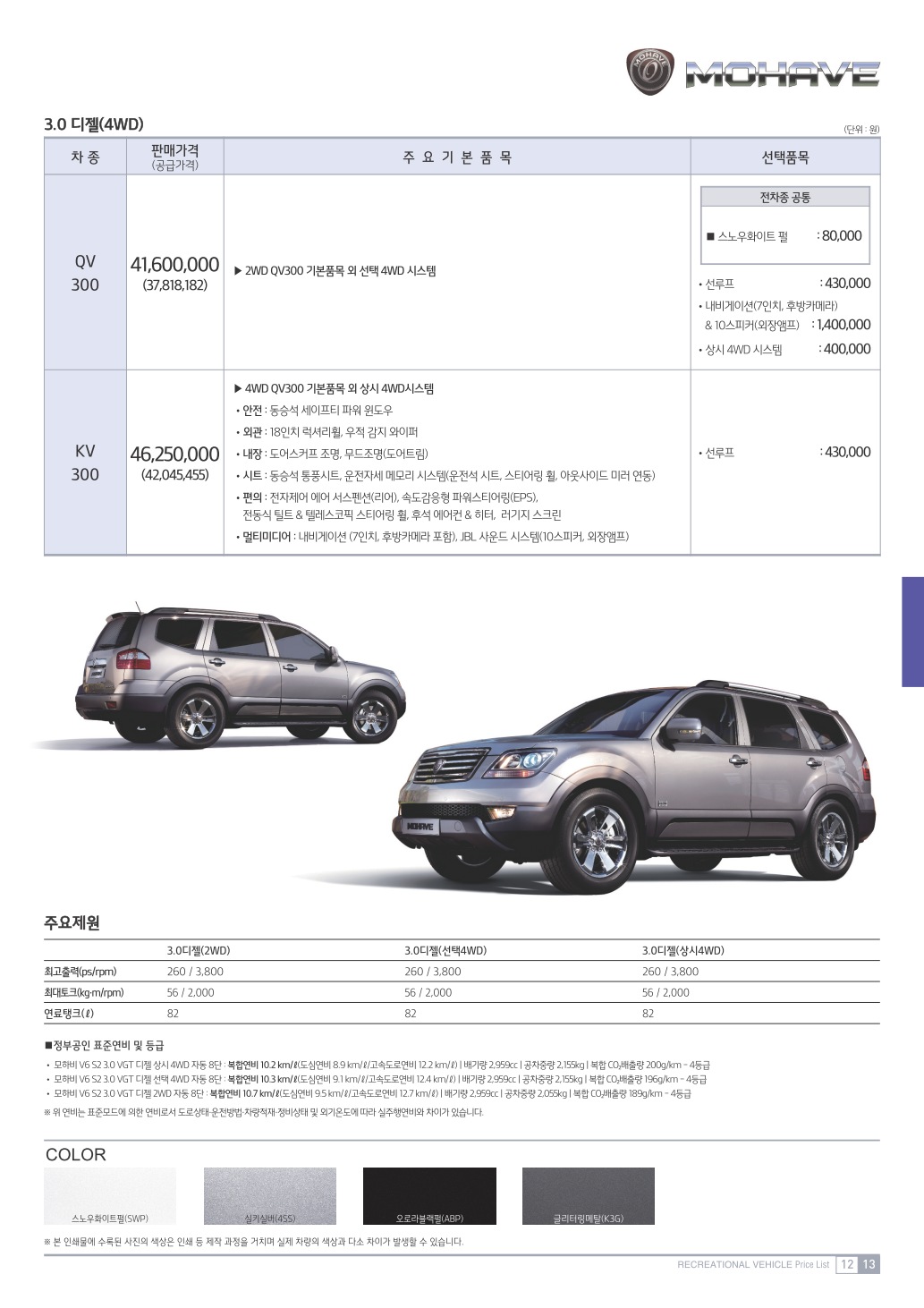2012년 3월 모하비 신차가격표