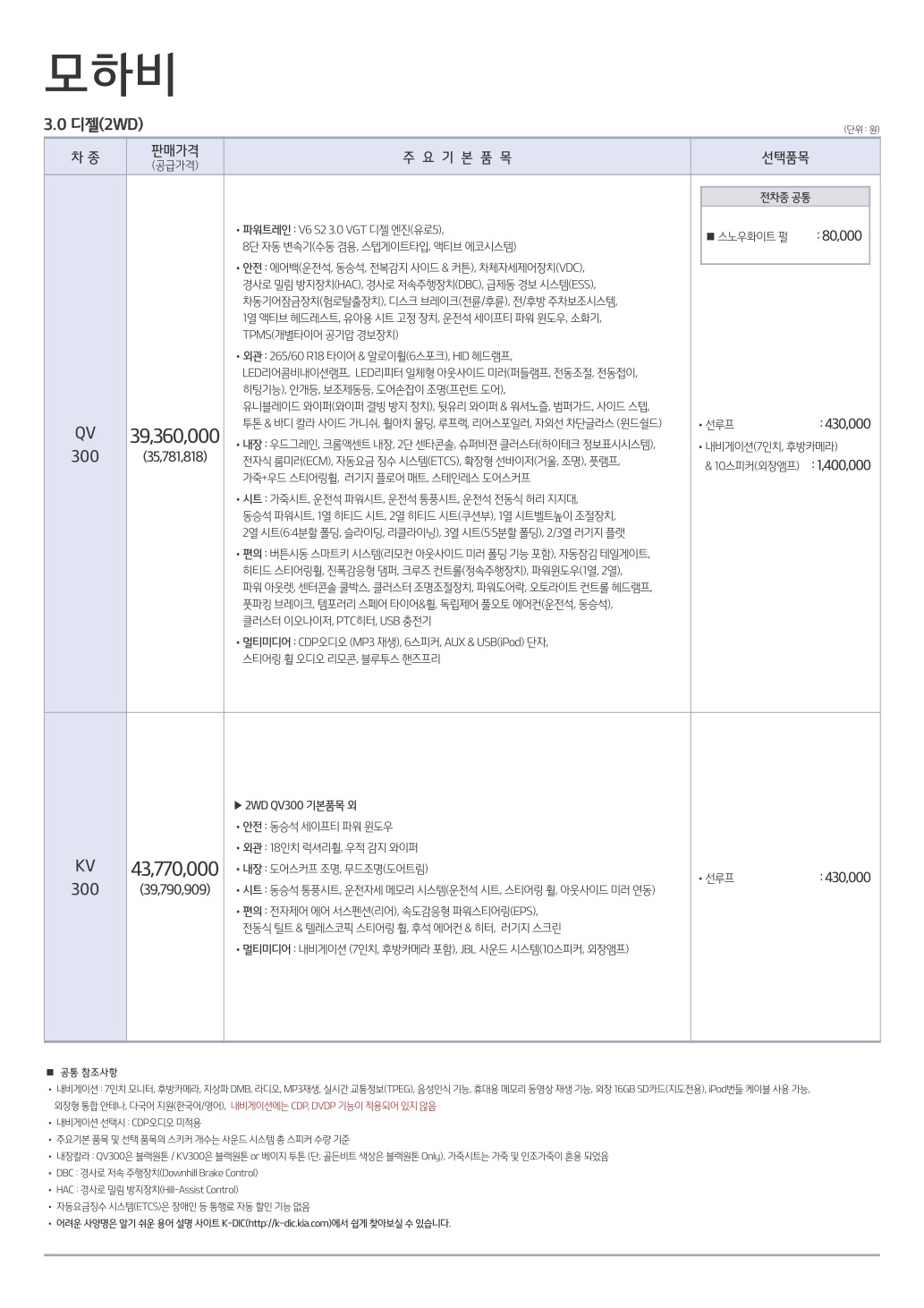 2014년 11월 모하비 신차가격표
