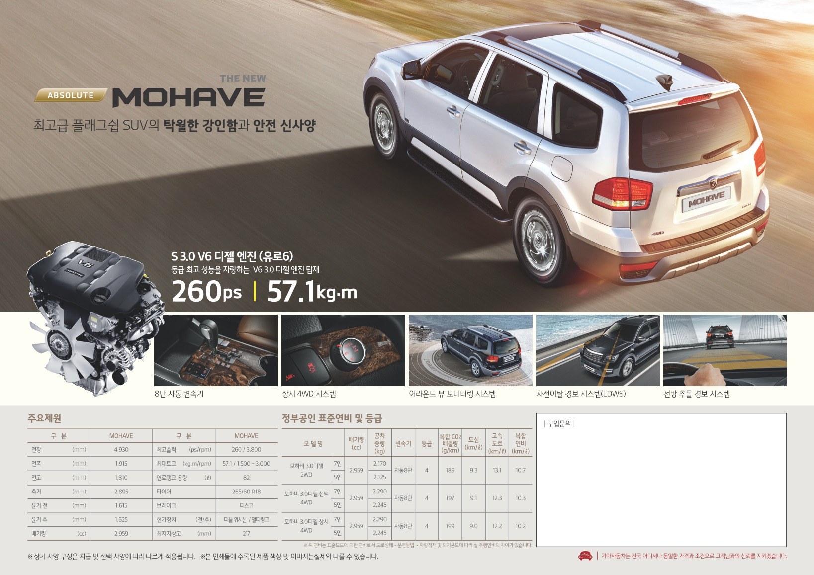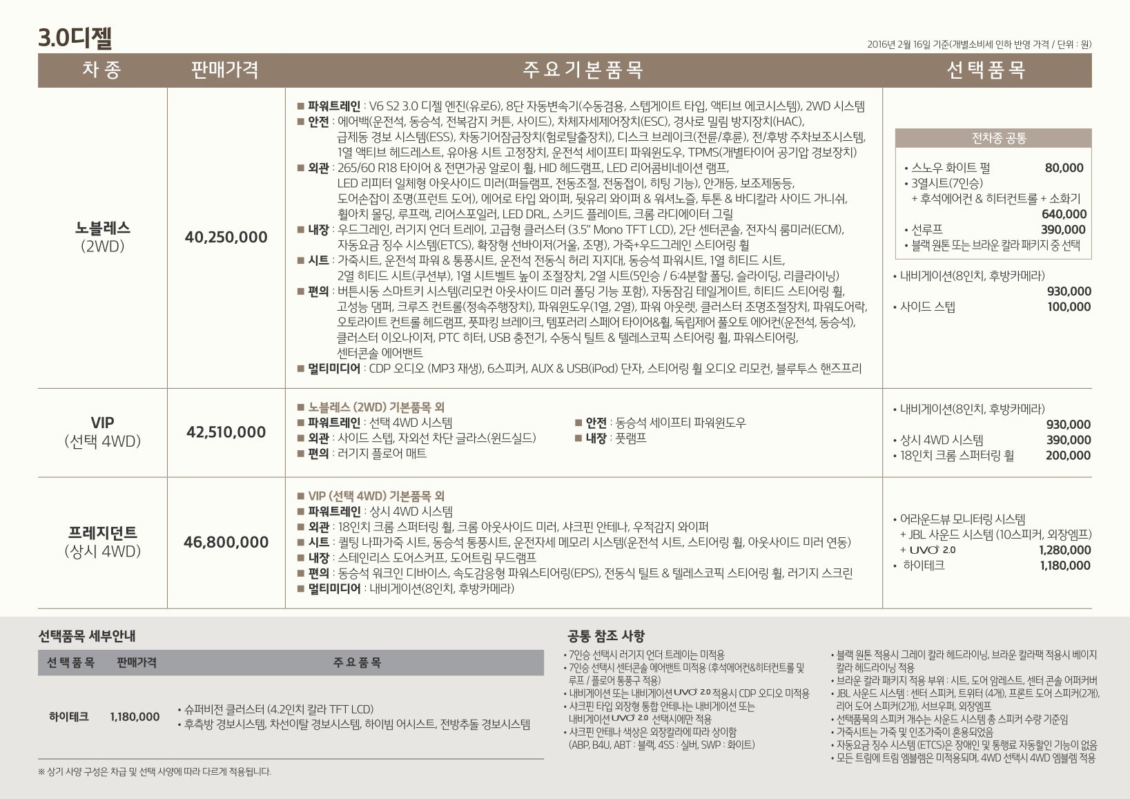 2016년 2월 모하비 신차가격표 (더 뉴 모하비)