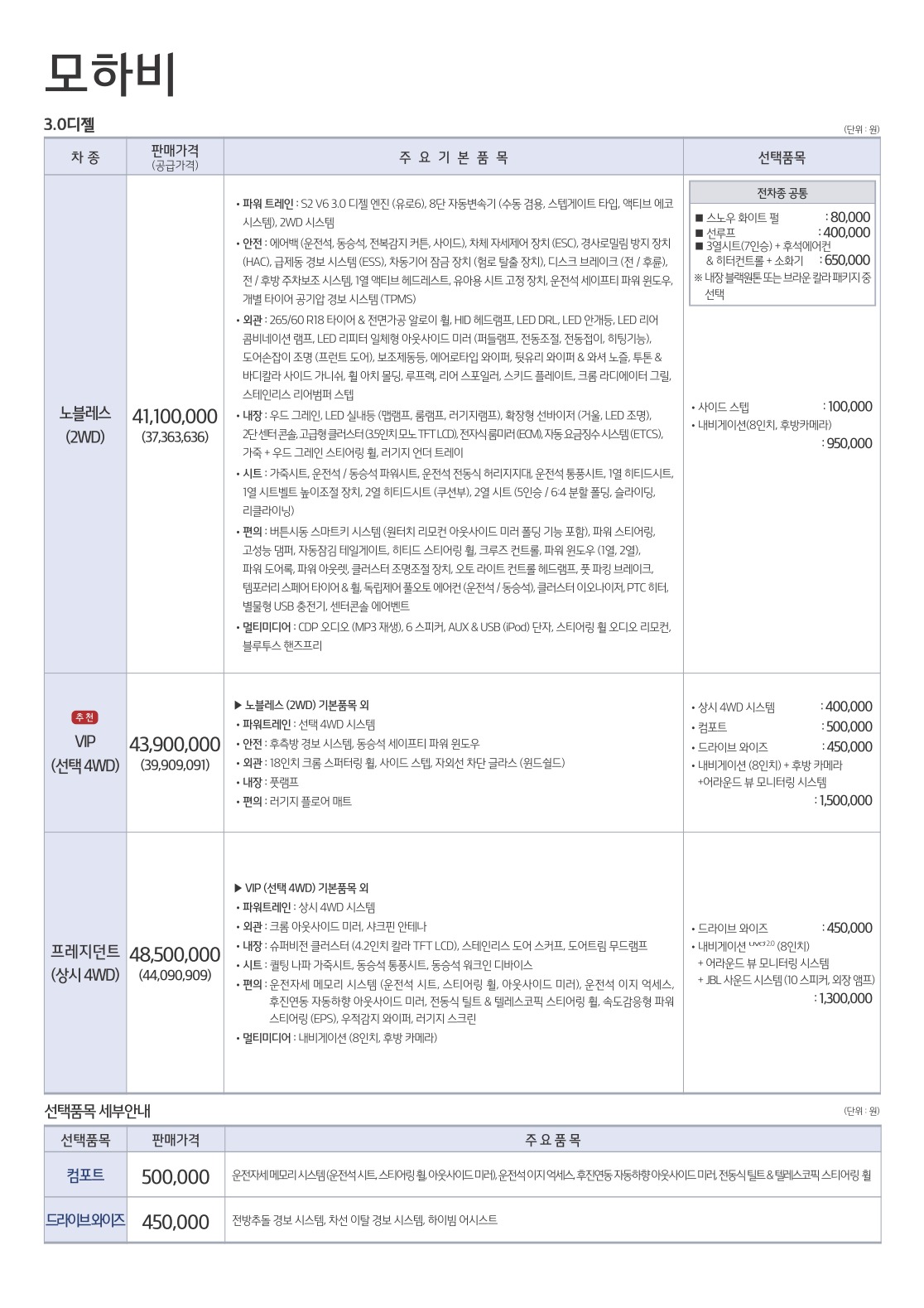 ※ 본 가격표의 모든 저작권은 해당 차량 제조사에 있습니다.