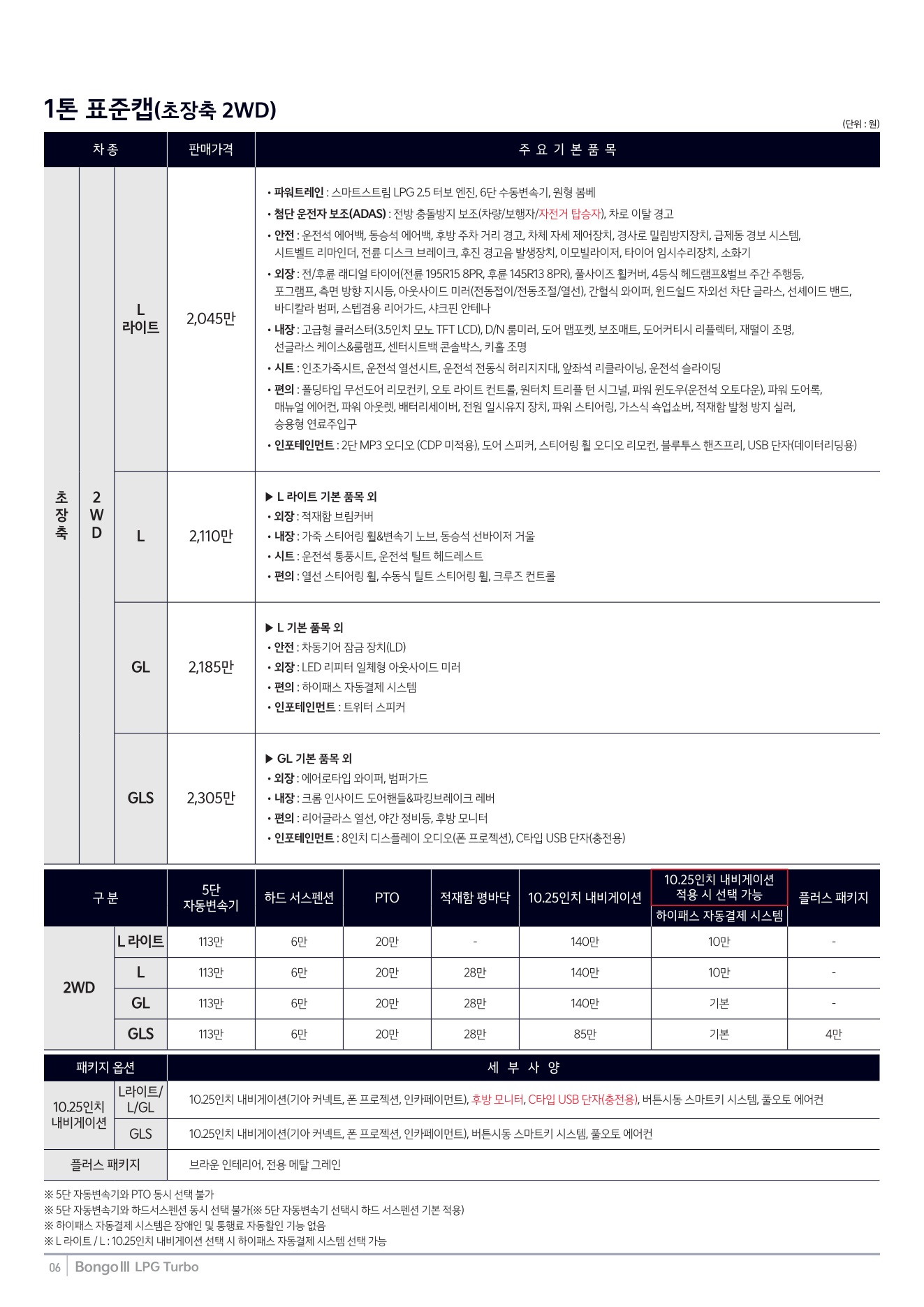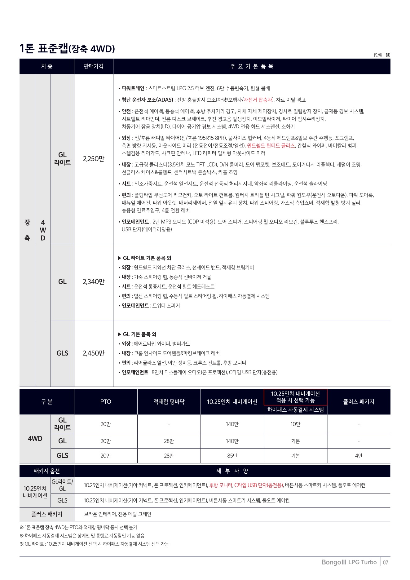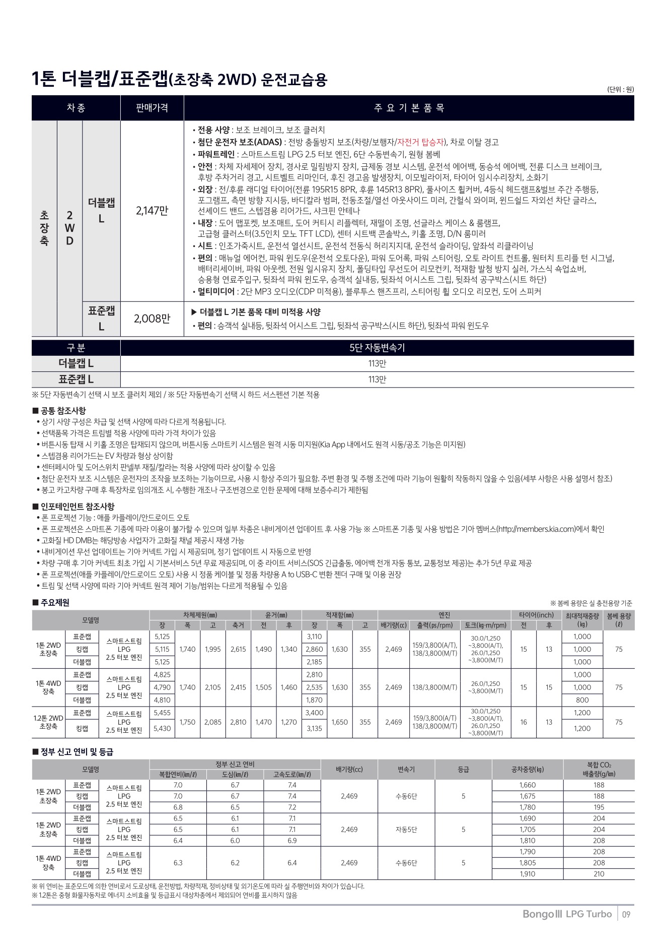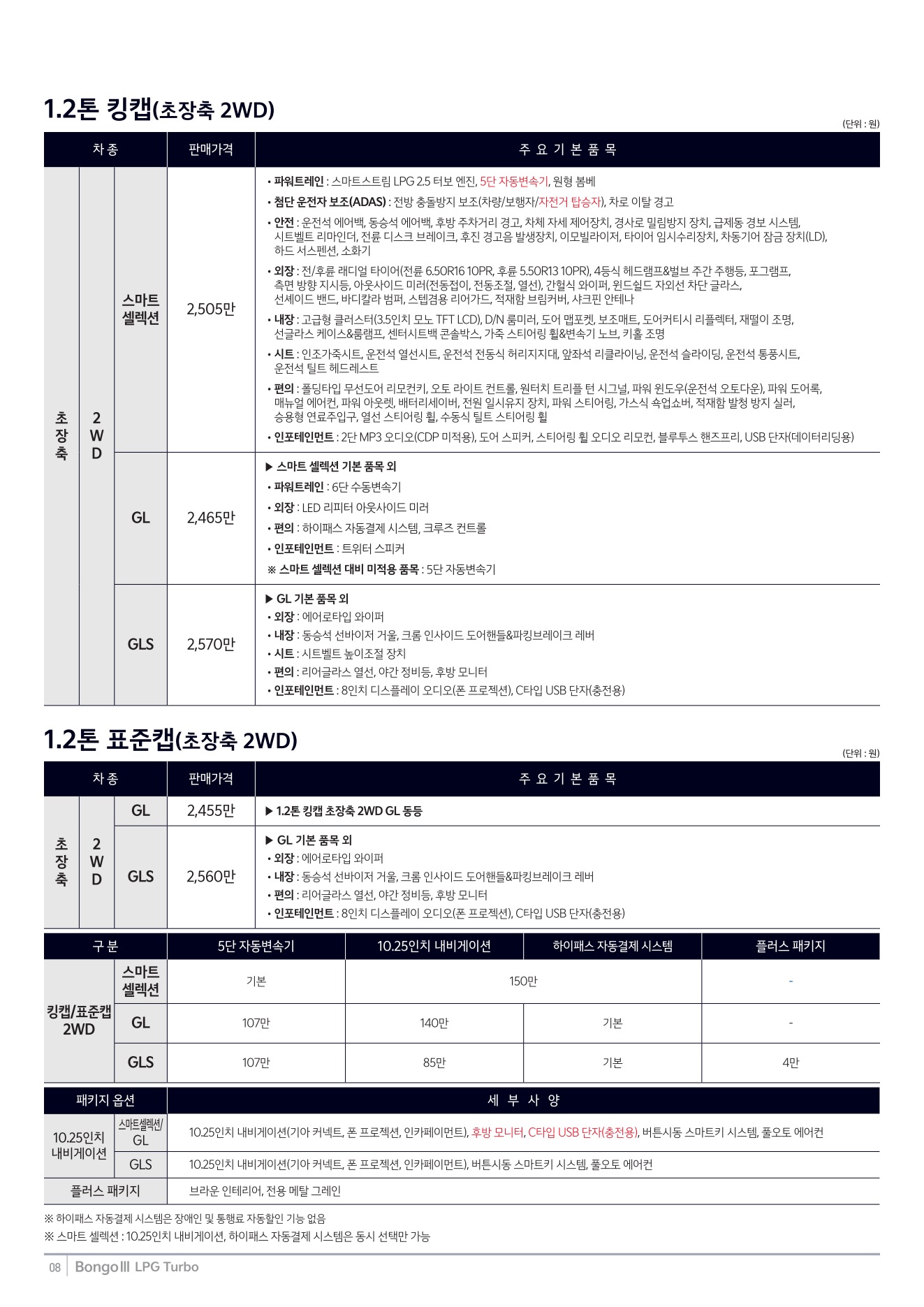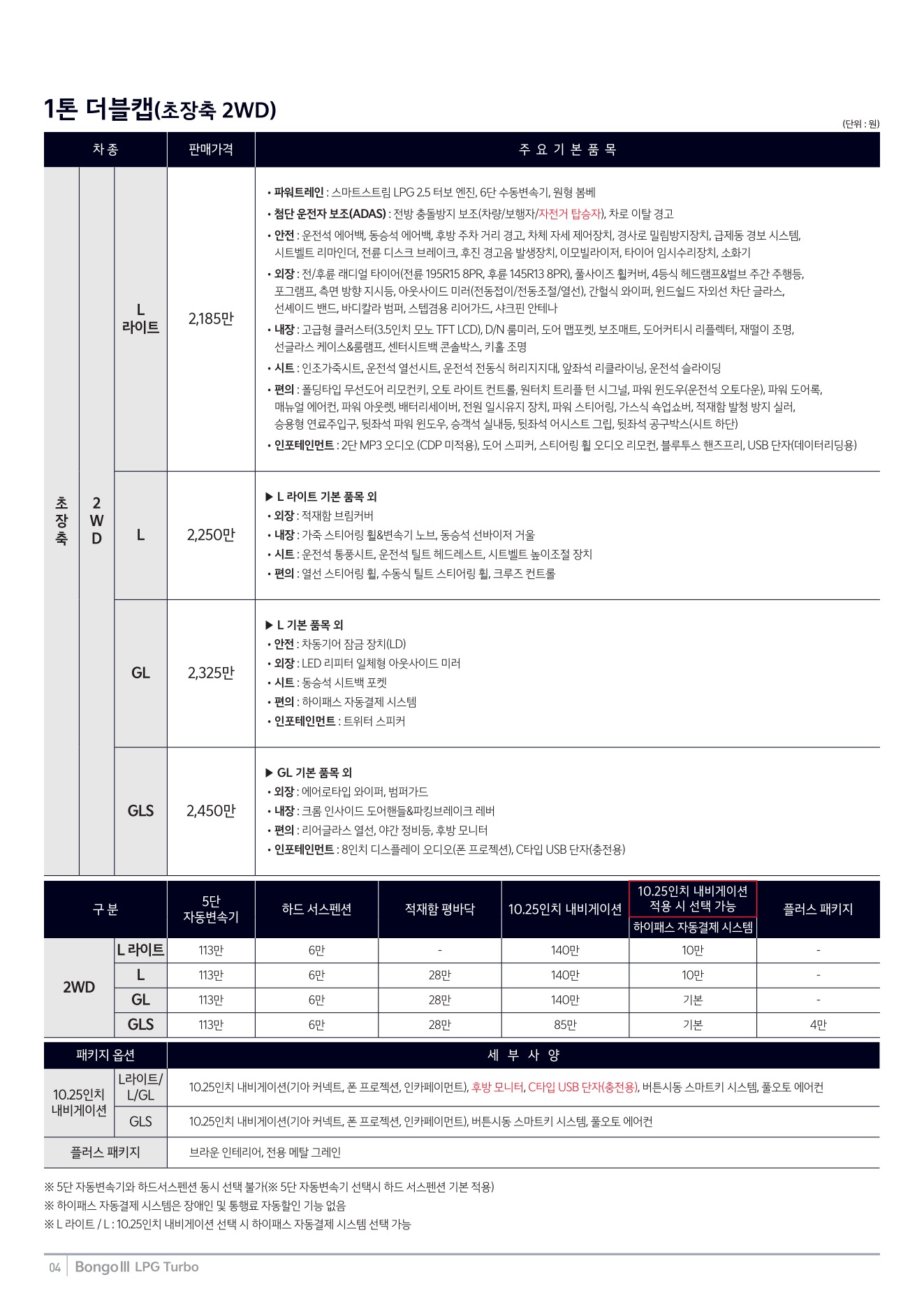 2025년 12월 봉고3 특장차 신차가격표