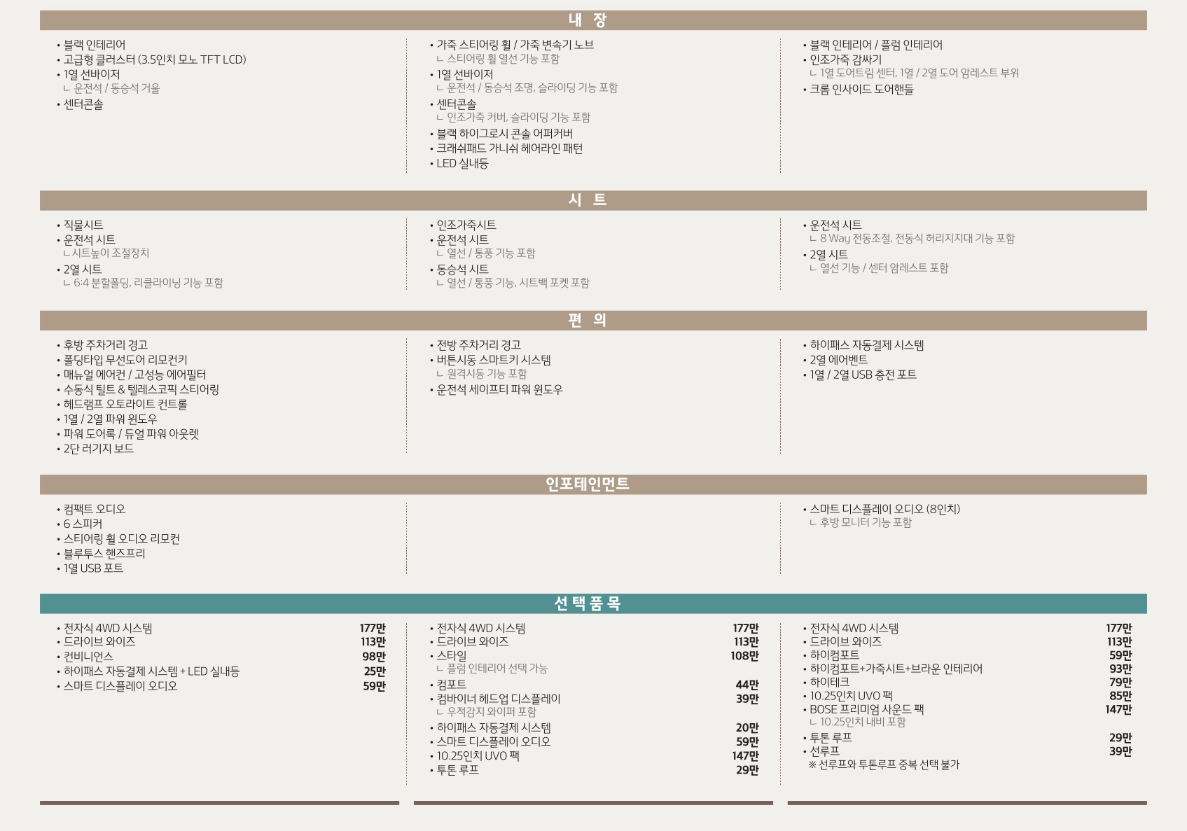 ※ 본 가격표의 모든 저작권은 해당 차량 제조사에 있습니다.