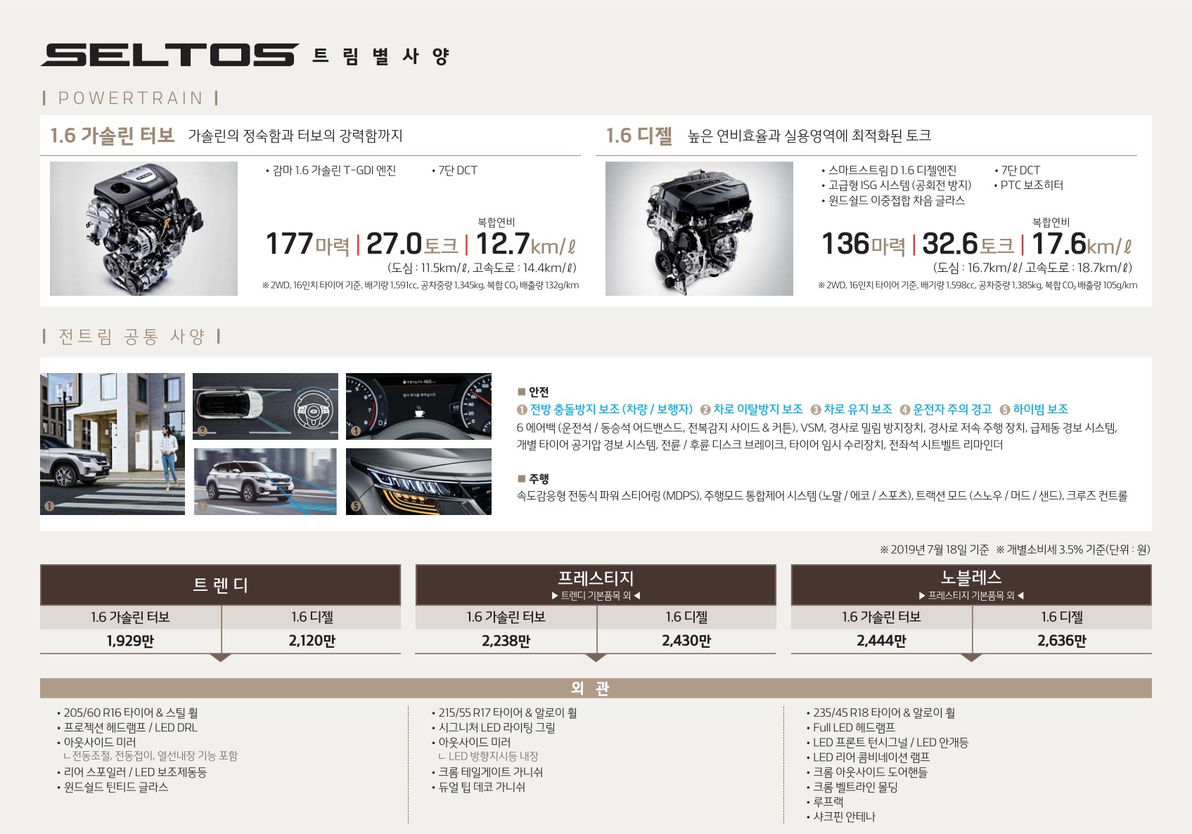2019년 7월 셀토스 가격표 (기아 셀토스 출시 신차가격표 옵션표 등급표)