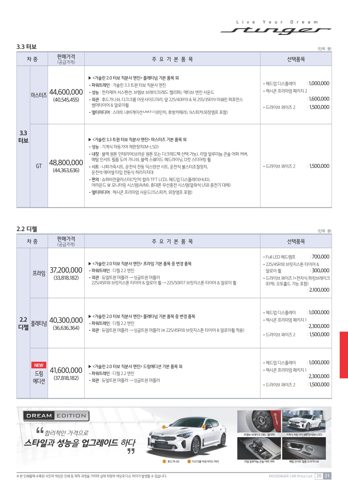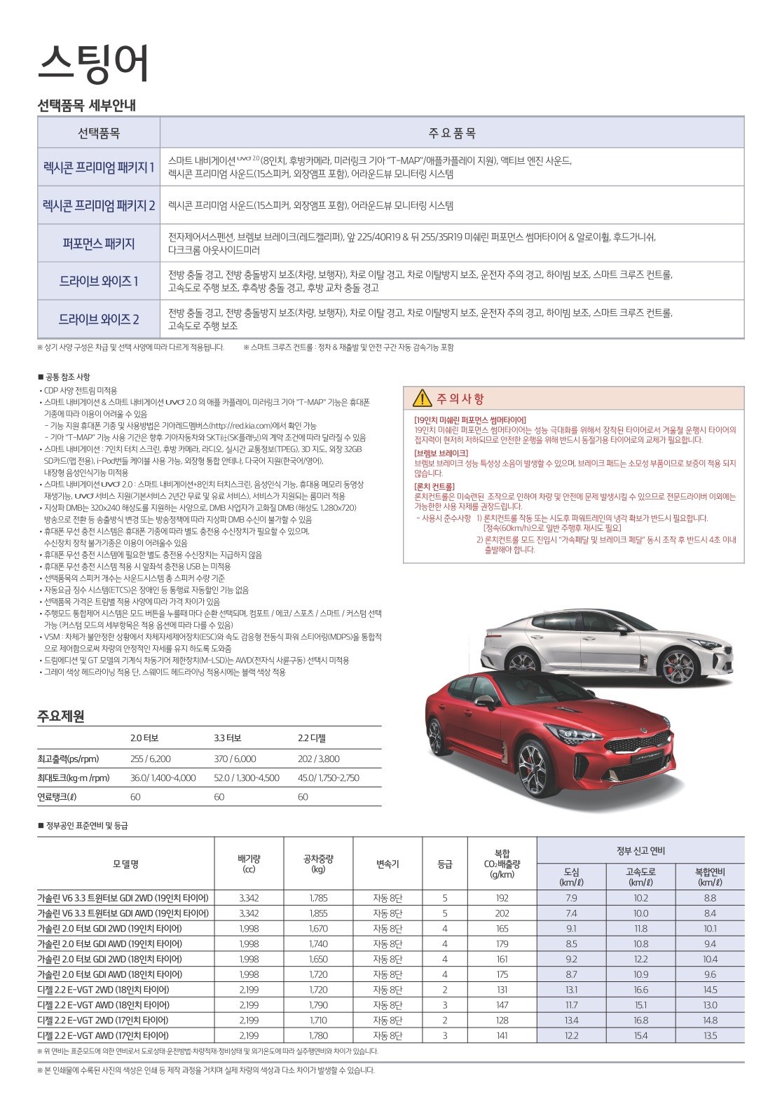 2018년 5월 스팅어 신차가격표 (2019년형)