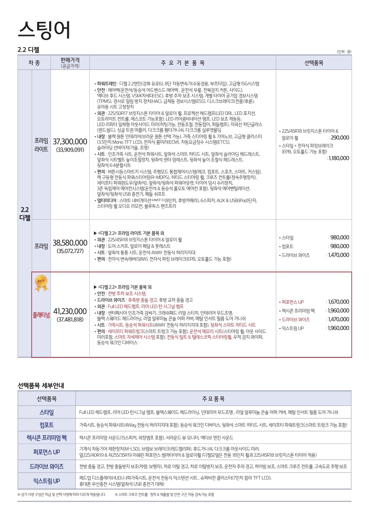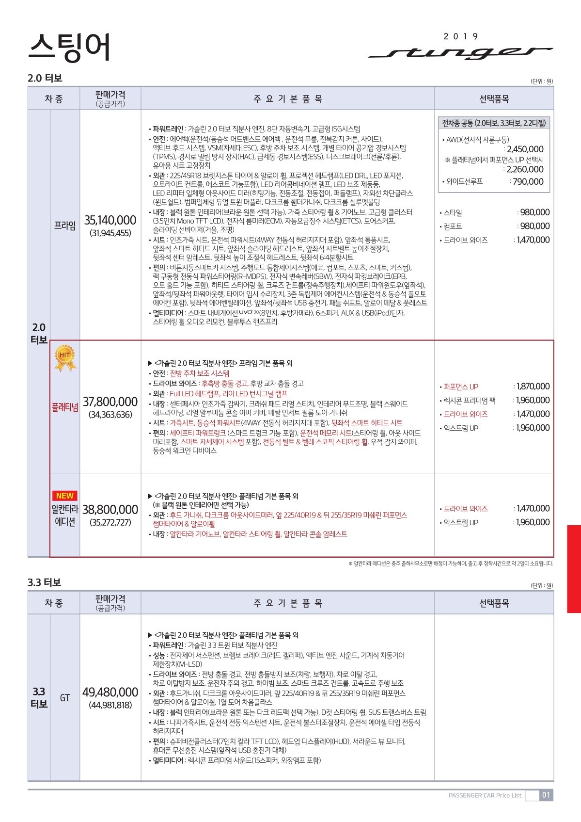 2019년 5월 스팅어 가격표 (2020년형 스팅어 가격표)
