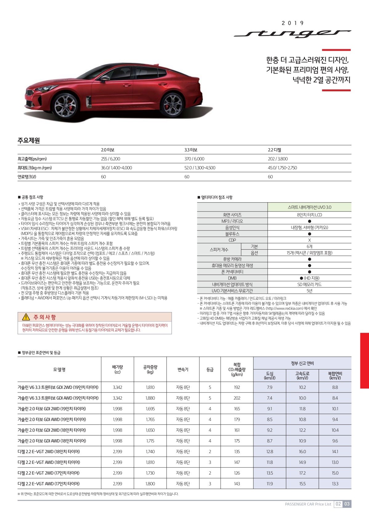 2018년 5월 스팅어 신차가격표 (2019년형)