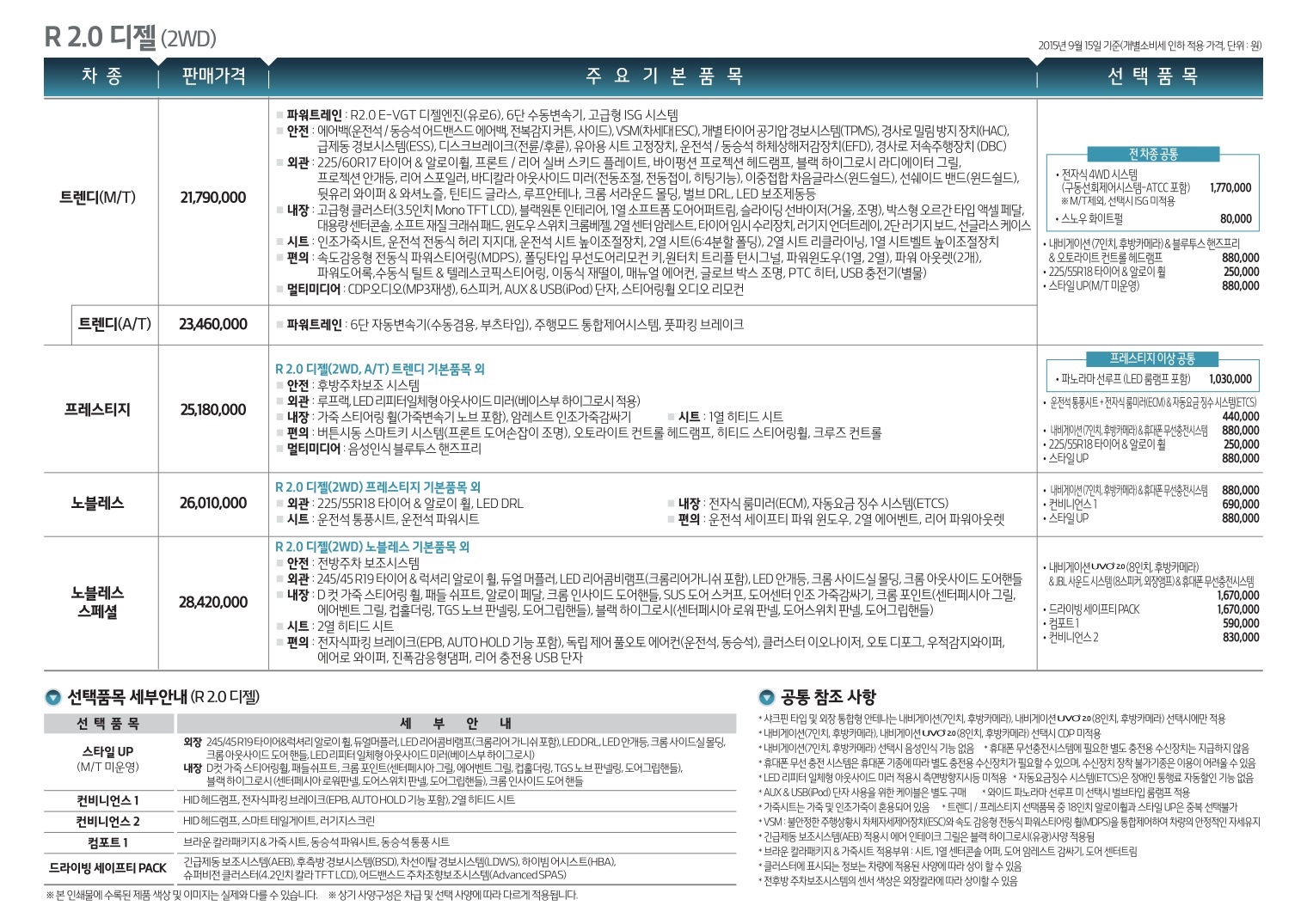 2015년 4월 스포티지R 신차가격표
