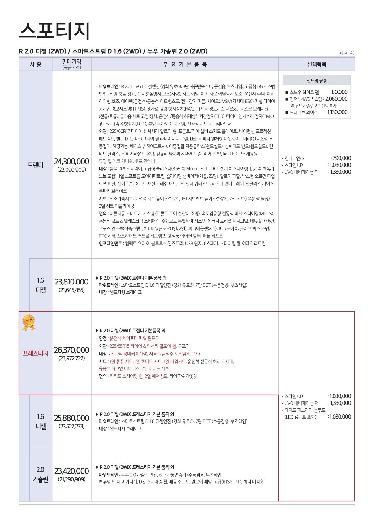 2020년 9월 스포티지 신차가격표 (2021년형 스포티지 출시)