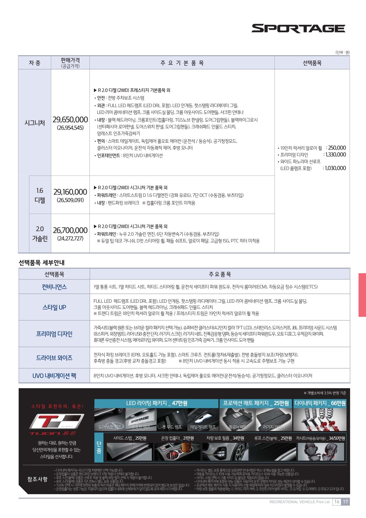 2019년 8월 스포티지 가격표 (2020년형 스포티지 출시)