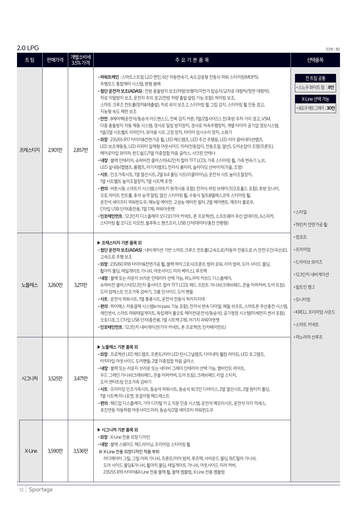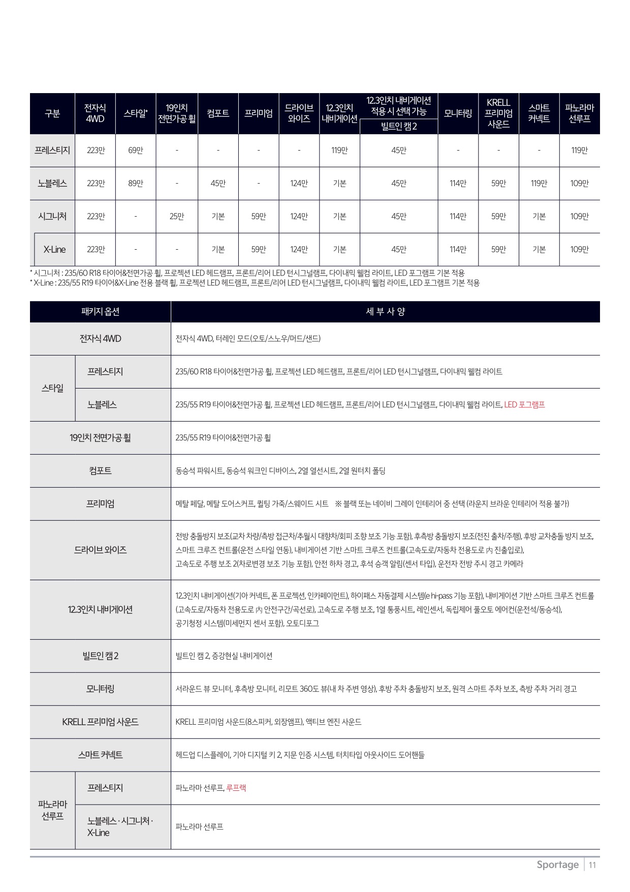 2024년 11월 스포티지 신차가격표 (NQ5 페이스리프트 더 뉴 스포티지 출시)