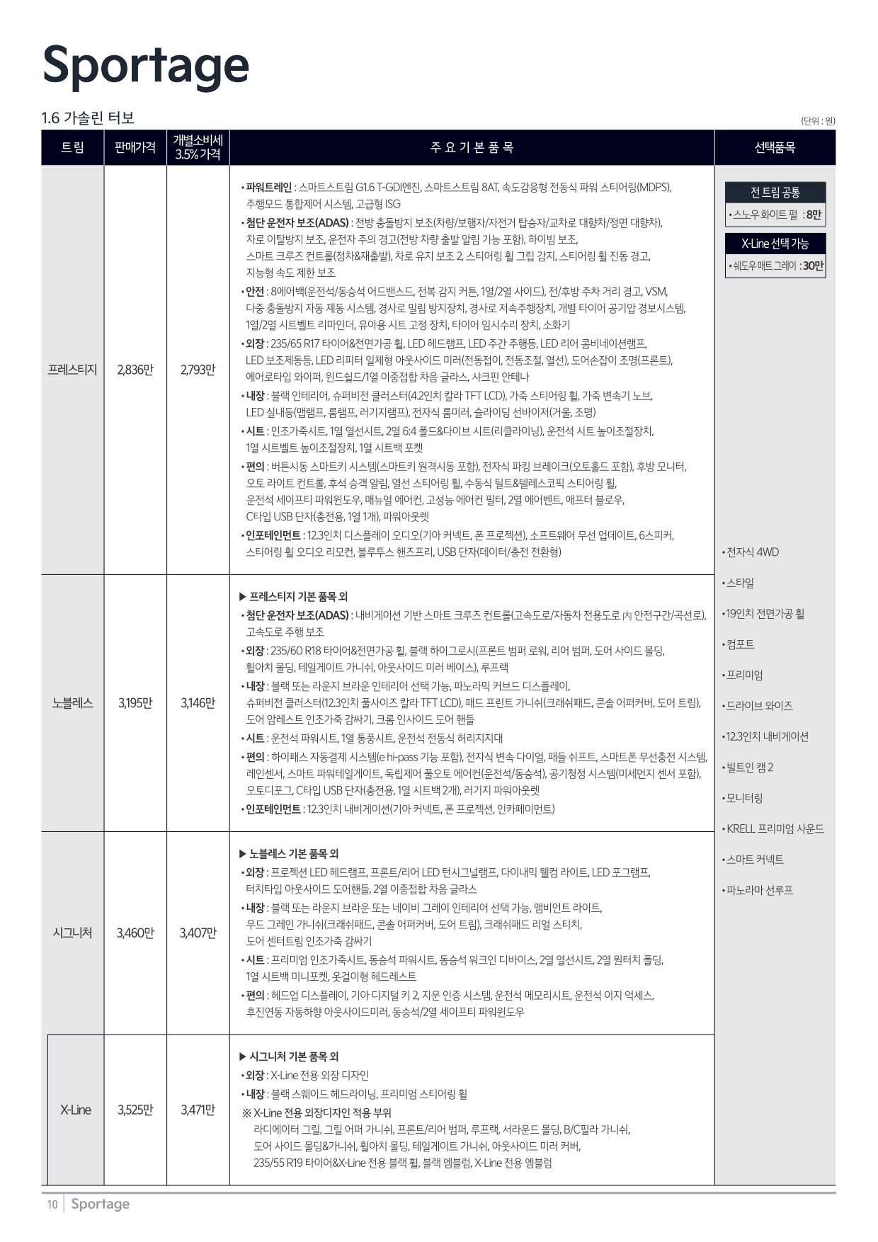 2025년 9월 스포티지 신차가격표 (2026년형 스포티지 출시)