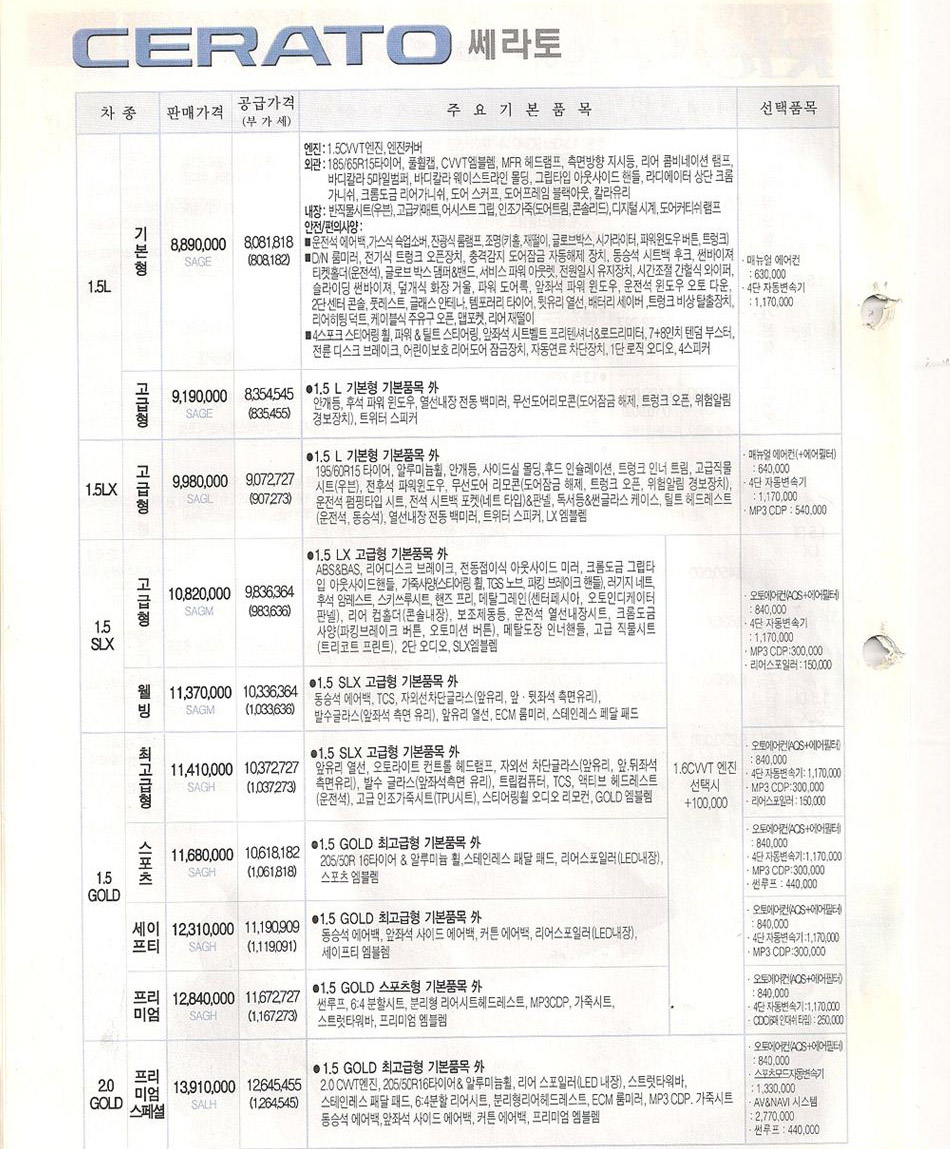 2005년 4월 쎄라토 / 쎄라토유로 신차가격표