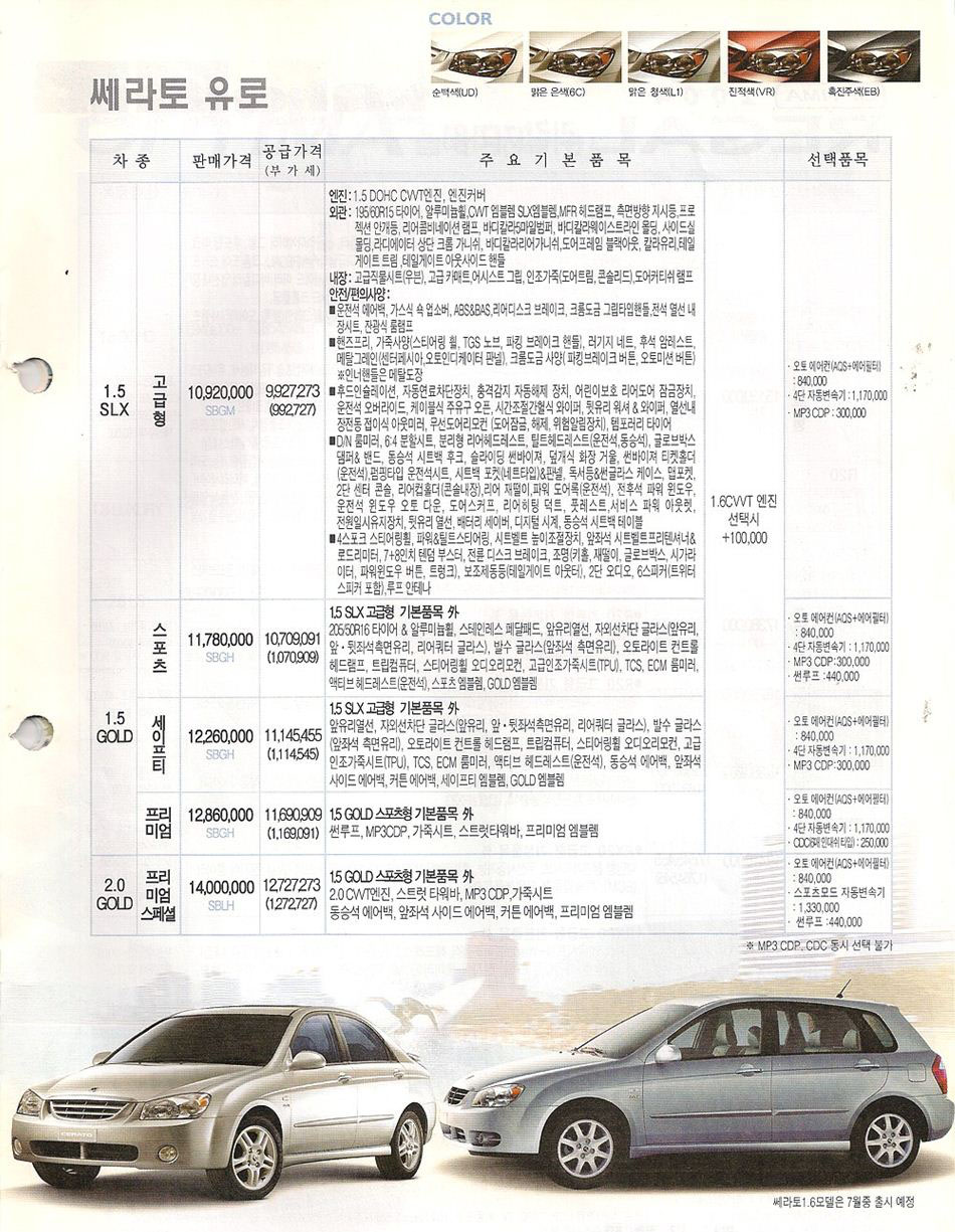 2004년 7월 쎄라토 / 쎄라토유로 신차가격표