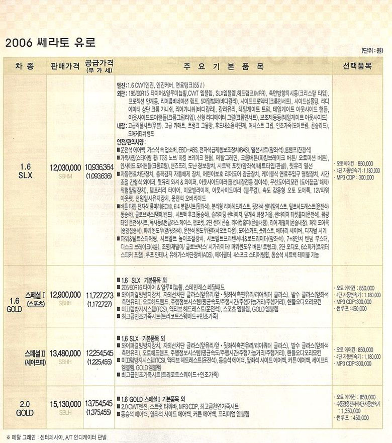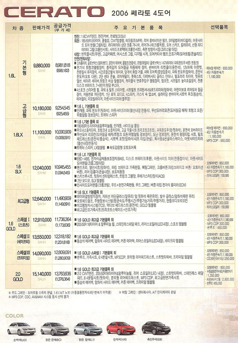 2006년 1월 쎄라토 / 쎄라토유로 신차가격표