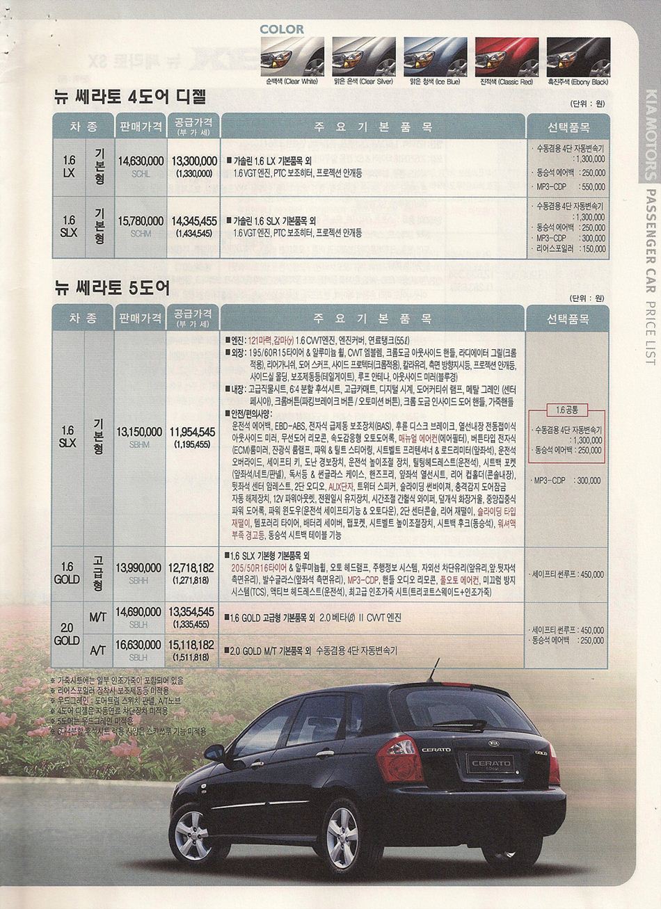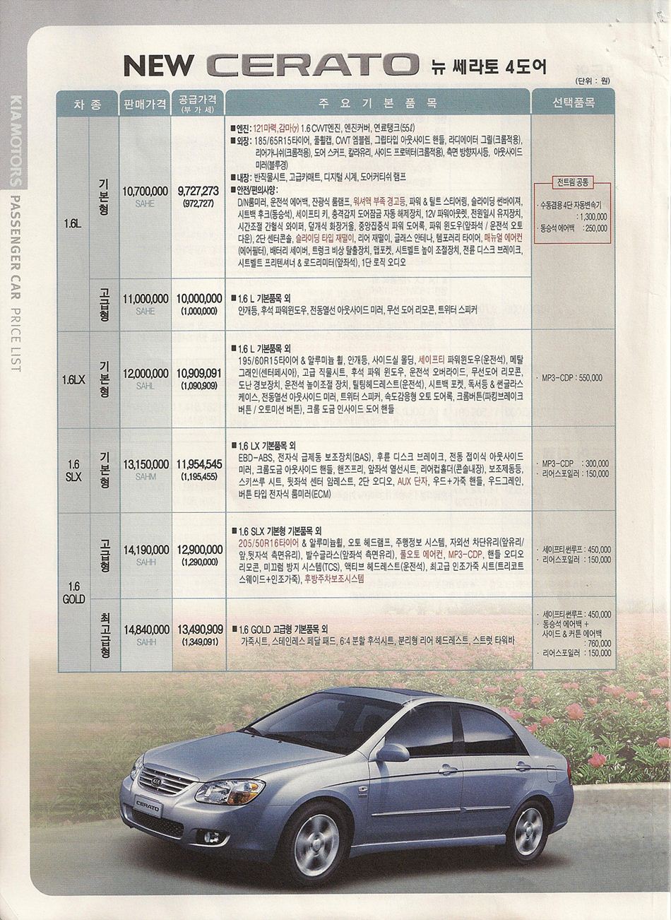 2006년 7월 뉴쎄라토 신차가격표