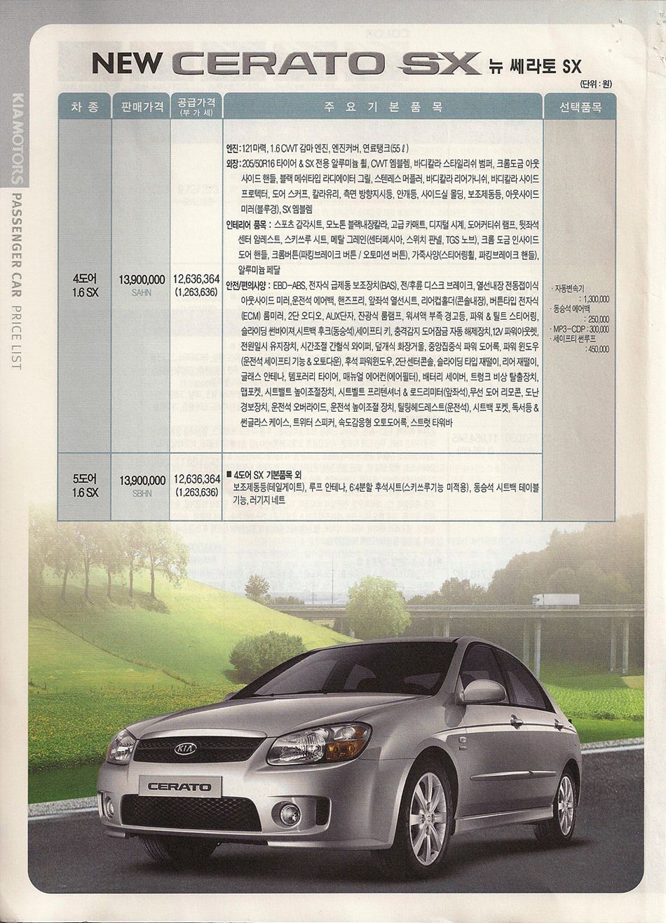 2008년 1월 뉴쎄라토 신차가격표
