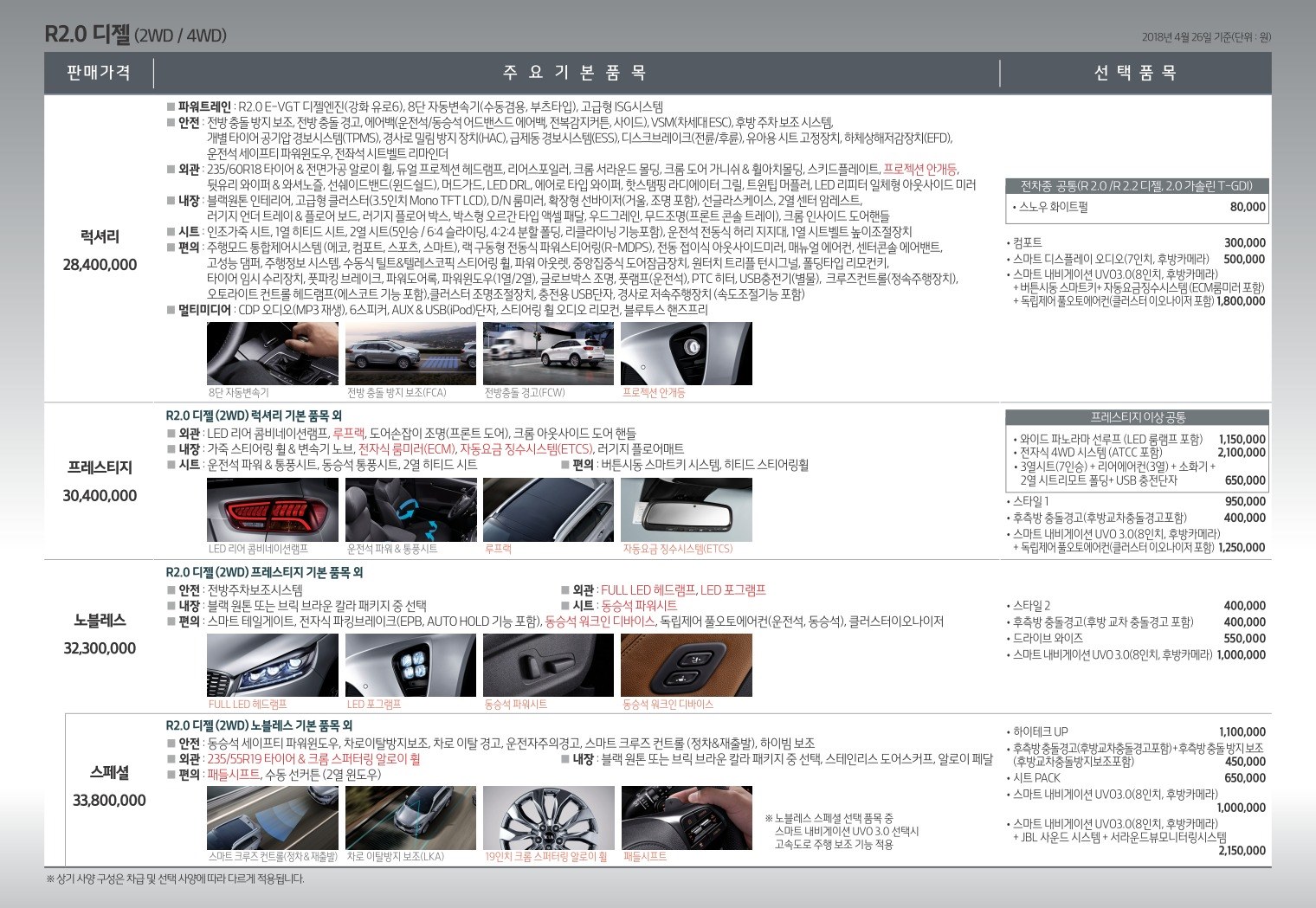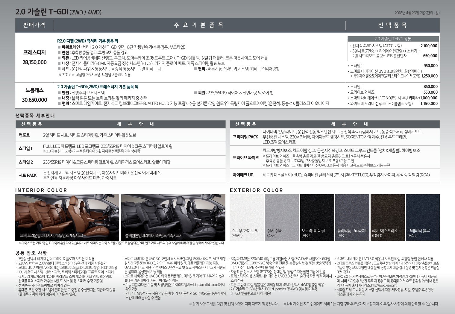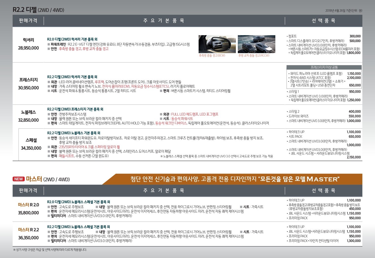 2018년 4월 올뉴쏘렌토 신차가격표 (쏘렌토 더마스터)
