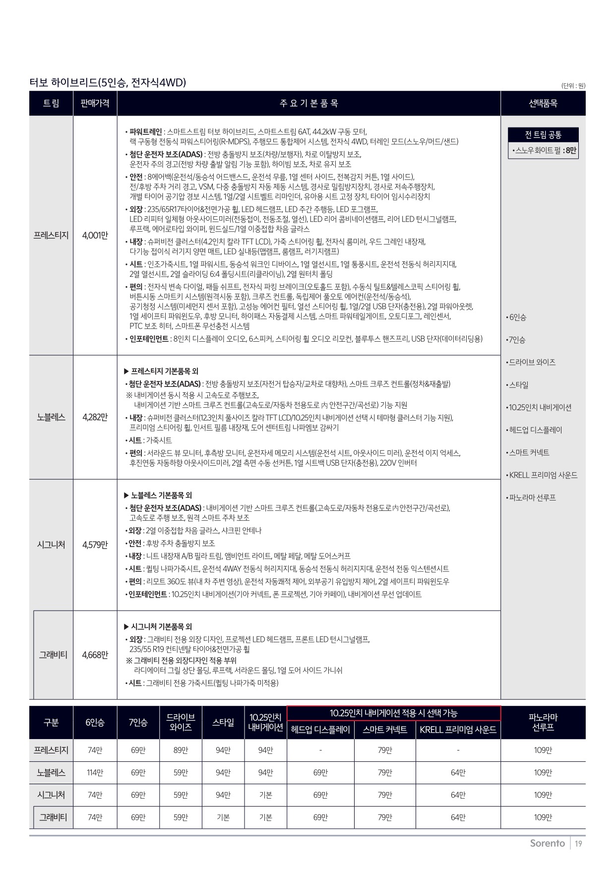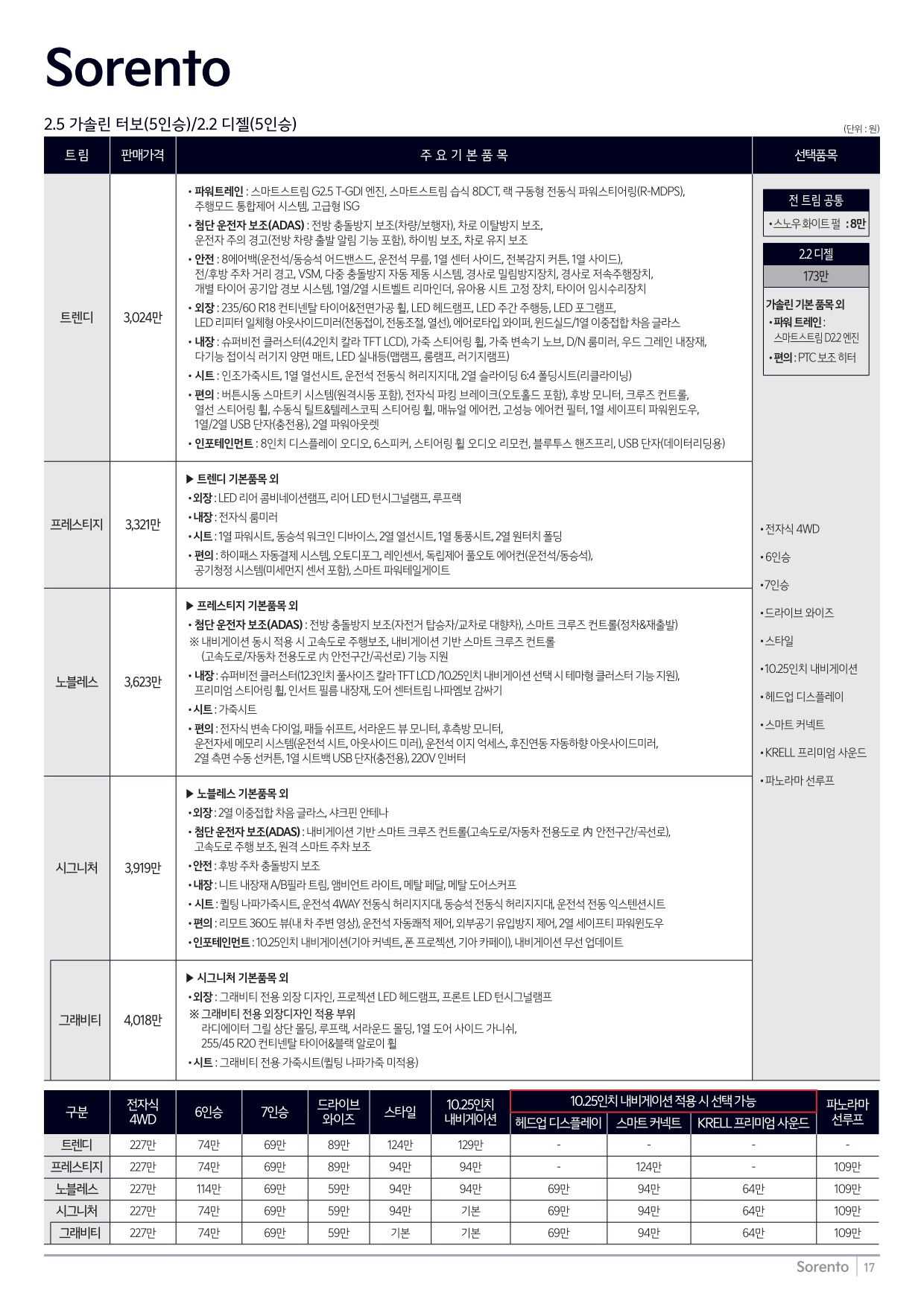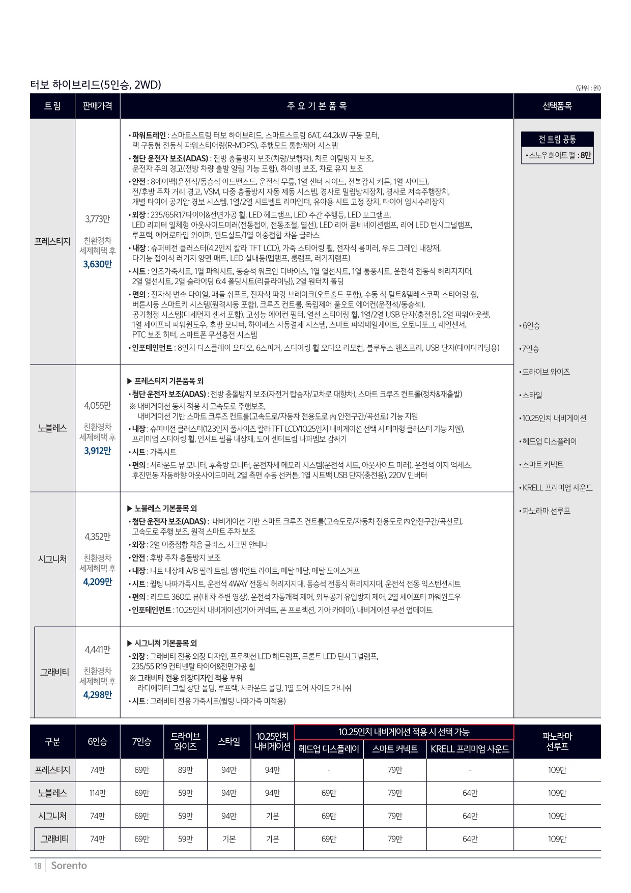 2021년 7월 쏘렌토 신차가격표 (2022년형 쏘렌토 출시)