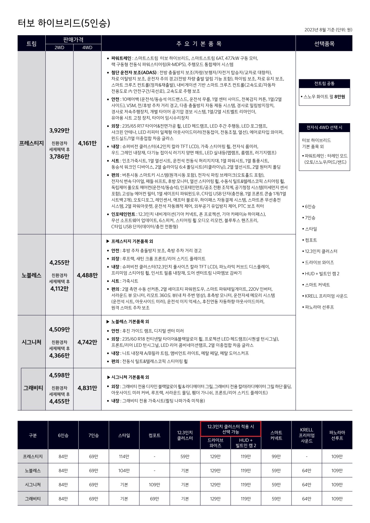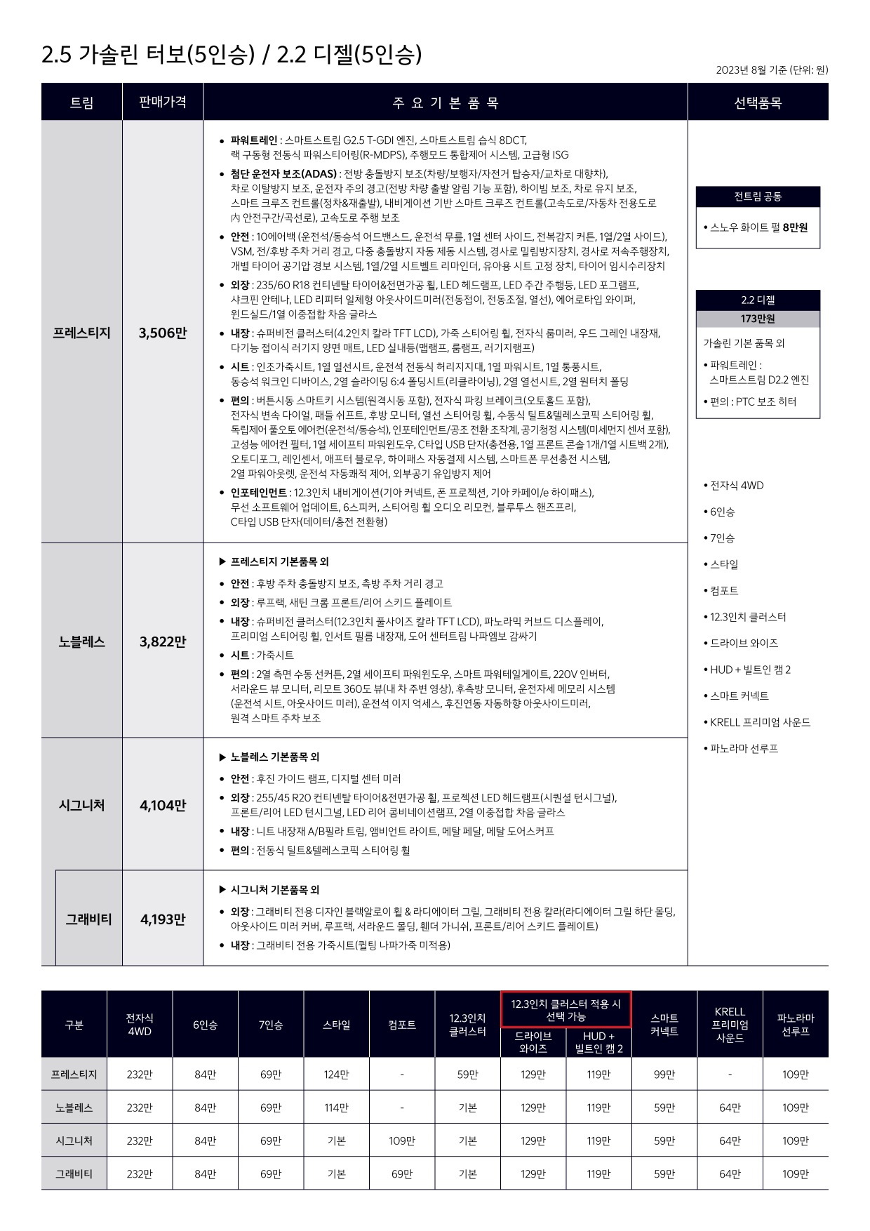 2023년 8월 더 뉴 쏘렌토 신차가격표 (4세대 쏘렌토 페이스리프트 출시)